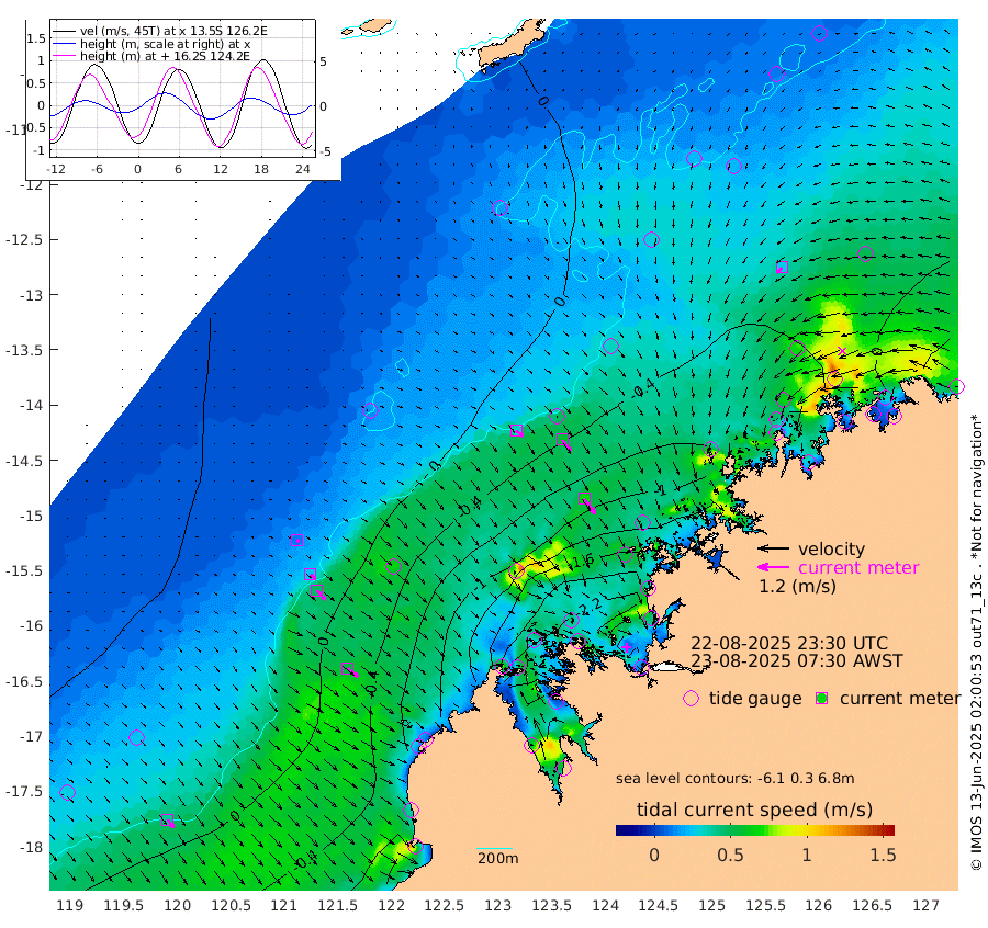 34cm/s 128T +10cm/s rms + 1cm/s 1T. NWSBRW 205m 38cm/s 144T +11cm/s rms + 6cm/s -110T. NWSROW 199m 71cm/s 144T +5cm/s rms + 2cm/s 65T. CAM050 58m 55cm/s 143T +12cm/s rms + 5cm/s 92T. CAM100 99m 12cm/s 131T +7cm/s rms + 1cm/s -85T. KIM400 396m 25cm/s 133T +9cm/s rms + 5cm/s -119T. KIM200 208m 47cm/s 139T +11cm/s rms + 5cm/s -147T. KIM100 99m 52cm/s 127T +8cm/s rms + 3cm/s -103T. KIM050 59m 28cm/s -133T +4cm/s rms + 2cm/s 23T. TIMORS88 91m -83cm Imperieuse Reef 22cm Mermaid Reef -51cm Broome -24cm Cape Baskerville -91cm Red Bluff -20cm Cape Boileau 20cm Scott Reef (WA) -8cm Ashmore Reef -189cm Karrakatta Bay -190cm Sunday Island -307cm Valentine Island -296cm Derby -289cm Port Usborne -183cm Bedford Islands -186cm Yampi Sound (Koolan Island) -175cm Macleay Island -77cm Adele Island 63cm Browse Island -273cm Shale Island -239cm Lizard Island -84cm Hall Point -127cm Degerando Island -70cm White Island -4cm Skua No. 4 Well 14cm Jabiru -35cm Maret Island -18cm Baudin Island -26cm Cape Voltaire (Krait Bay) -11cm Dillon Shoal 46cm Laminaria -45cm Port Warrender -3cm Troughton Island -20cm Cassini Island 12cm West Holothuria Reef Offshore 0cm Jar Island -18cm Lynher Bank -3cm Heywood Shoal -8cm Pee Shoal 17cm Van Cloon Shoal 49cm Carronade Island 57cm Guy Point 58cm Napier Broome Bay 93cm Lesueur Island