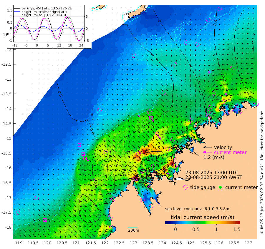 33cm/s 126T +10cm/s rms + 1cm/s 1T. NWSBRW 205m 44cm/s 139T +11cm/s rms + 6cm/s -110T. NWSROW 199m 96cm/s 144T +5cm/s rms + 2cm/s 65T. CAM050 58m 70cm/s 143T +12cm/s rms + 5cm/s 92T. CAM100 99m 16cm/s 120T +7cm/s rms + 1cm/s -85T. KIM400 396m 34cm/s 122T +9cm/s rms + 5cm/s -119T. KIM200 208m 61cm/s 128T +11cm/s rms + 5cm/s -147T. KIM100 99m 65cm/s 113T +8cm/s rms + 3cm/s -103T. KIM050 59m 28cm/s -140T +4cm/s rms + 2cm/s 23T. TIMORS88 91m -78cm Imperieuse Reef 63cm Mermaid Reef 107cm Broome 82cm Cape Baskerville 15cm Red Bluff 64cm Cape Boileau 57cm Scott Reef (WA) 20cm Ashmore Reef -110cm Karrakatta Bay -141cm Sunday Island -368cm Valentine Island -428cm Derby -323cm Port Usborne -51cm Bedford Islands -41cm Yampi Sound (Koolan Island) 14cm Macleay Island 38cm Adele Island 146cm Browse Island -111cm Shale Island -103cm Lizard Island 80cm Hall Point 11cm Degerando Island 55cm White Island 35cm Skua No. 4 Well 21cm Jabiru 74cm Maret Island 62cm Baudin Island 57cm Cape Voltaire (Krait Bay) -20cm Dillon Shoal 44cm Laminaria 34cm Port Warrender 6cm Troughton Island 53cm Cassini Island 39cm West Holothuria Reef Offshore 2cm Jar Island 47cm Lynher Bank 60cm Heywood Shoal 5cm Pee Shoal -23cm Van Cloon Shoal 10cm Carronade Island 17cm Guy Point 2cm Napier Broome Bay -39cm Lesueur Island