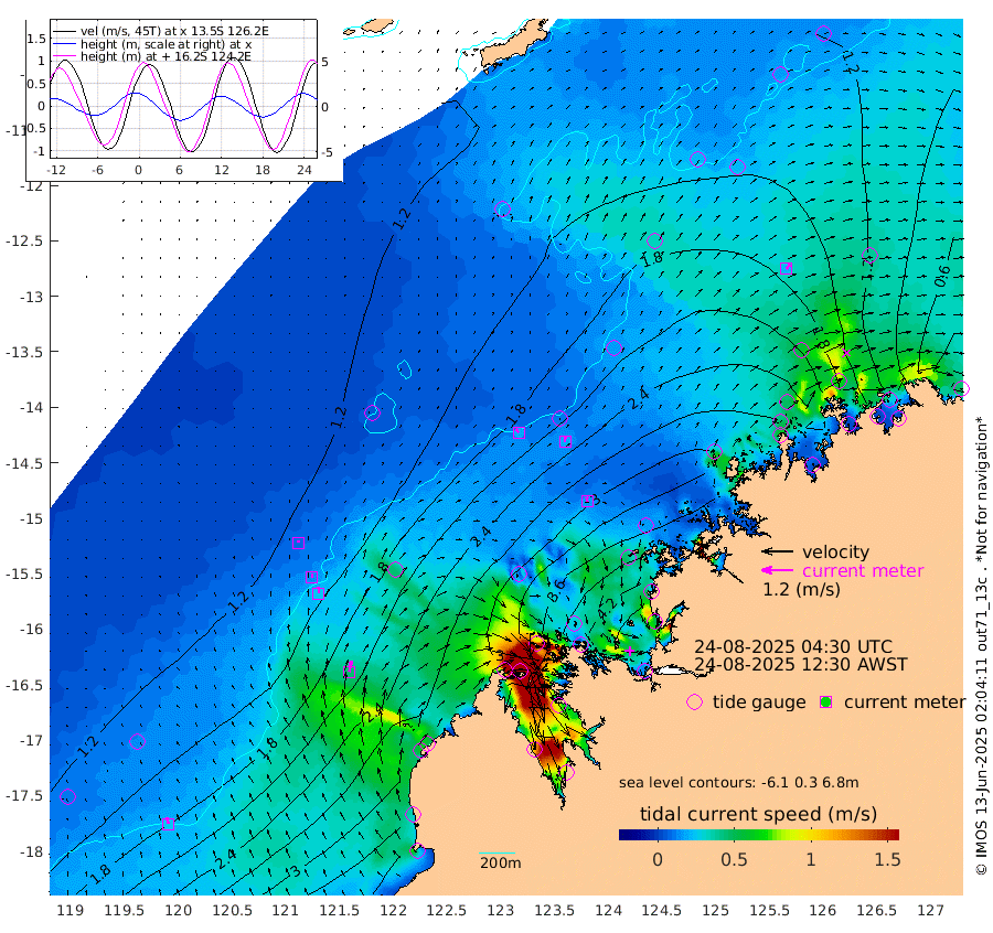 19cm/s -31T +10cm/s rms + 1cm/s 1T. NWSBRW 205m 25cm/s -16T +11cm/s rms + 6cm/s -110T. NWSROW 199m 16cm/s -7T +5cm/s rms + 2cm/s 65T. CAM050 58m 19cm/s 0T +12cm/s rms + 5cm/s 92T. CAM100 99m 7cm/s 6T +7cm/s rms + 1cm/s -85T. KIM400 396m 13cm/s 2T +9cm/s rms + 5cm/s -119T. KIM200 208m 25cm/s 0T +11cm/s rms + 5cm/s -147T. KIM100 99m 44cm/s 10T +8cm/s rms + 3cm/s -103T. KIM050 59m 22cm/s 36T +4cm/s rms + 2cm/s 23T. TIMORS88 91m 157cm Imperieuse Reef 127cm Mermaid Reef 342cm Broome 251cm Cape Baskerville 311cm Red Bluff 263cm Cape Boileau 123cm Scott Reef (WA) 153cm Ashmore Reef 354cm Karrakatta Bay 338cm Sunday Island 201cm Valentine Island 107cm Derby 225cm Port Usborne 386cm Bedford Islands 436cm Yampi Sound (Koolan Island) 467cm Macleay Island 304cm Adele Island 122cm Browse Island 519cm Shale Island 493cm Lizard Island 361cm Hall Point 381cm Degerando Island 338cm White Island 161cm Skua No. 4 Well 113cm Jabiru 282cm Maret Island 252cm Baudin Island 258cm Cape Voltaire (Krait Bay) 131cm Dillon Shoal 73cm Laminaria 297cm Port Warrender 175cm Troughton Island 241cm Cassini Island 174cm West Holothuria Reef Offshore 167cm Jar Island 201cm Lynher Bank 223cm Heywood Shoal 145cm Pee Shoal 107cm Van Cloon Shoal 98cm Carronade Island 102cm Guy Point 107cm Napier Broome Bay -16cm Lesueur Island