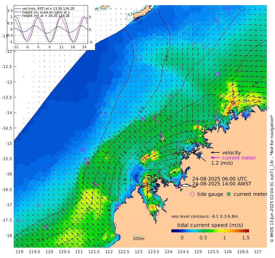 38cm/s -50T +10cm/s rms + 1cm/s 1T. NWSBRW 205m 46cm/s -36T +11cm/s rms + 6cm/s -110T. NWSROW 199m 83cm/s -31T +5cm/s rms + 2cm/s 65T. CAM050 58m 65cm/s -30T +12cm/s rms + 5cm/s 92T. CAM100 99m 14cm/s -44T +7cm/s rms + 1cm/s -85T. KIM400 396m 30cm/s -44T +9cm/s rms + 5cm/s -119T. KIM200 208m 57cm/s -38T +11cm/s rms + 5cm/s -147T. KIM100 99m 62cm/s -43T +8cm/s rms + 3cm/s -103T. KIM050 59m 32cm/s 38T +4cm/s rms + 2cm/s 23T. TIMORS88 91m 140cm Imperieuse Reef 16cm Mermaid Reef 121cm Broome 79cm Cape Baskerville 158cm Red Bluff 94cm Cape Boileau 19cm Scott Reef (WA) 59cm Ashmore Reef 288cm Karrakatta Bay 299cm Sunday Island 393cm Valentine Island 381cm Derby 379cm Port Usborne 270cm Bedford Islands 292cm Yampi Sound (Koolan Island) 278cm Macleay Island 147cm Adele Island -41cm Browse Island 399cm Shale Island 368cm Lizard Island 150cm Hall Point 215cm Degerando Island 156cm White Island 54cm Skua No. 4 Well 30cm Jabiru 102cm Maret Island 89cm Baudin Island 96cm Cape Voltaire (Krait Bay) 74cm Dillon Shoal -11cm Laminaria 133cm Port Warrender 73cm Troughton Island 84cm Cassini Island 51cm West Holothuria Reef Offshore 72cm Jar Island 74cm Lynher Bank 72cm Heywood Shoal 60cm Pee Shoal 48cm Van Cloon Shoal 17cm Carronade Island 15cm Guy Point 20cm Napier Broome Bay -30cm Lesueur Island