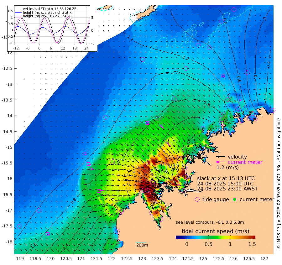 15cm/s 103T +10cm/s rms + 1cm/s 1T. NWSBRW 205m 25cm/s 118T +11cm/s rms + 6cm/s -110T. NWSROW 199m 76cm/s 140T +5cm/s rms + 2cm/s 65T. CAM050 58m 54cm/s 134T +12cm/s rms + 5cm/s 92T. CAM100 99m 13cm/s 98T +7cm/s rms + 1cm/s -85T. KIM400 396m 28cm/s 105T +9cm/s rms + 5cm/s -119T. KIM200 208m 47cm/s 110T +11cm/s rms + 5cm/s -147T. KIM100 99m 59cm/s 83T +8cm/s rms + 3cm/s -103T. KIM050 59m 6cm/s 178T +4cm/s rms + 2cm/s 23T. TIMORS88 91m 45cm Imperieuse Reef 154cm Mermaid Reef 349cm Broome 259cm Cape Baskerville 246cm Red Bluff 242cm Cape Boileau 142cm Scott Reef (WA) 134cm Ashmore Reef 153cm Karrakatta Bay 112cm Sunday Island -193cm Valentine Island -319cm Derby -135cm Port Usborne 238cm Bedford Islands 283cm Yampi Sound (Koolan Island) 344cm Macleay Island 257cm Adele Island 219cm Browse Island 280cm Shale Island 270cm Lizard Island 350cm Hall Point 291cm Degerando Island 297cm White Island 151cm Skua No. 4 Well 111cm Jabiru 275cm Maret Island 241cm Baudin Island 243cm Cape Voltaire (Krait Bay) 75cm Dillon Shoal 101cm Laminaria 249cm Port Warrender 137cm Troughton Island 229cm Cassini Island 165cm West Holothuria Reef Offshore 126cm Jar Island 192cm Lynher Bank 217cm Heywood Shoal 114cm Pee Shoal 59cm Van Cloon Shoal 83cm Carronade Island 88cm Guy Point 79cm Napier Broome Bay -42cm Lesueur Island