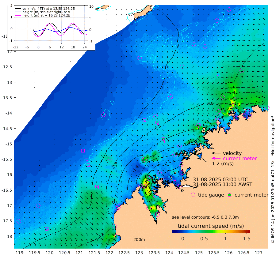 24cm/s 139T +10cm/s rms + 1cm/s 1T. NWSBRW 205m 24cm/s 146T +11cm/s rms + 6cm/s -110T. NWSROW 199m 47cm/s 154T +5cm/s rms + 2cm/s 65T. CAM050 58m 36cm/s 155T +12cm/s rms + 5cm/s 92T. CAM100 99m 6cm/s 152T +7cm/s rms + 1cm/s -85T. KIM400 396m 13cm/s 139T +9cm/s rms + 5cm/s -119T. KIM200 208m 27cm/s 146T +11cm/s rms + 5cm/s -147T. KIM100 99m 34cm/s 134T +8cm/s rms + 3cm/s -103T. KIM050 59m 24cm/s -121T +4cm/s rms + 2cm/s 23T. TIMORS88 91m -80cm Imperieuse Reef -25cm Mermaid Reef -59cm Broome -44cm Cape Baskerville -88cm Red Bluff -34cm Cape Boileau -20cm Scott Reef (WA) -44cm Ashmore Reef -171cm Karrakatta Bay -181cm Sunday Island -279cm Valentine Island -263cm Derby -245cm Port Usborne -142cm Bedford Islands -170cm Yampi Sound (Koolan Island) -168cm Macleay Island -88cm Adele Island 31cm Browse Island -235cm Shale Island -228cm Lizard Island -187cm Hall Point -103cm Degerando Island -98cm White Island -38cm Skua No. 4 Well -68cm Jabiru -51cm Maret Island -59cm Baudin Island -43cm Cape Voltaire (Krait Bay) -54cm Dillon Shoal -34cm Laminaria -63cm Port Warrender -44cm Troughton Island -38cm Cassini Island -39cm West Holothuria Reef Offshore -43cm Jar Island -50cm Lynher Bank -40cm Heywood Shoal -42cm Pee Shoal -31cm Van Cloon Shoal -8cm Carronade Island -12cm Guy Point -2cm Napier Broome Bay 8cm Lesueur Island