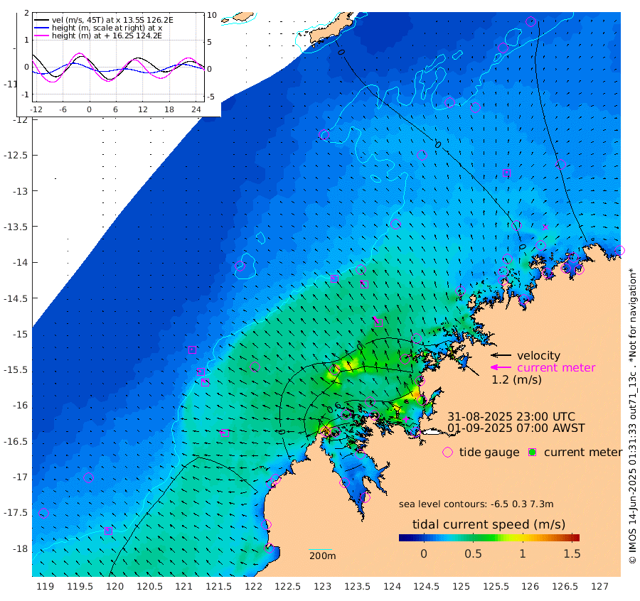 16cm/s -56T +10cm/s rms + 1cm/s 1T. NWSBRW 205m 18cm/s -47T +11cm/s rms + 6cm/s -110T. NWSROW 199m 48cm/s -35T +5cm/s rms + 2cm/s 65T. CAM050 58m 34cm/s -38T +12cm/s rms + 5cm/s 92T. CAM100 99m 6cm/s -64T +7cm/s rms + 1cm/s -85T. KIM400 396m 15cm/s -63T +9cm/s rms + 5cm/s -119T. KIM200 208m 28cm/s -53T +11cm/s rms + 5cm/s -147T. KIM100 99m 33cm/s -78T +8cm/s rms + 3cm/s -103T. KIM050 59m 11cm/s 2T +4cm/s rms + 2cm/s 23T. TIMORS88 91m 22cm Imperieuse Reef -40cm Mermaid Reef -103cm Broome -75cm Cape Baskerville -75cm Red Bluff -68cm Cape Boileau -32cm Scott Reef (WA) -19cm Ashmore Reef 19cm Karrakatta Bay 49cm Sunday Island 230cm Valentine Island 282cm Derby 192cm Port Usborne -28cm Bedford Islands -30cm Yampi Sound (Koolan Island) -6cm Macleay Island -33cm Adele Island -67cm Browse Island -9cm Shale Island -7cm Lizard Island 32cm Hall Point -60cm Degerando Island -59cm White Island -27cm Skua No. 4 Well 25cm Jabiru -66cm Maret Island -54cm Baudin Island -63cm Cape Voltaire (Krait Bay) 15cm Dillon Shoal -17cm Laminaria -48cm Port Warrender -5cm Troughton Island -55cm Cassini Island -23cm West Holothuria Reef Offshore -14cm Jar Island -42cm Lynher Bank -64cm Heywood Shoal -6cm Pee Shoal 11cm Van Cloon Shoal -5cm Carronade Island -4cm Guy Point -3cm Napier Broome Bay 40cm Lesueur Island