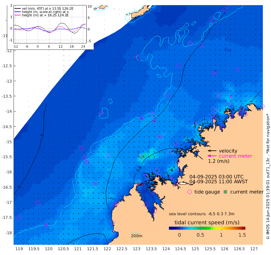 7cm/s -58T +10cm/s rms + 1cm/s 1T. NWSBRW 205m 11cm/s -36T +11cm/s rms + 6cm/s -110T. NWSROW 199m 14cm/s -35T +5cm/s rms + 2cm/s 65T. CAM050 58m 12cm/s -38T +12cm/s rms + 5cm/s 92T. CAM100 99m 4cm/s -51T +7cm/s rms + 1cm/s -85T. KIM400 396m 8cm/s -44T +9cm/s rms + 5cm/s -119T. KIM200 208m 13cm/s -36T +11cm/s rms + 5cm/s -147T. KIM100 99m 13cm/s -32T +8cm/s rms + 3cm/s -103T. KIM050 59m 9cm/s -17T +4cm/s rms + 2cm/s 23T. TIMORS88 91m 31cm Imperieuse Reef 5cm Mermaid Reef 44cm Broome 42cm Cape Baskerville 66cm Red Bluff 48cm Cape Boileau 8cm Scott Reef (WA) 21cm Ashmore Reef 78cm Karrakatta Bay 76cm Sunday Island 103cm Valentine Island 80cm Derby 76cm Port Usborne 73cm Bedford Islands 75cm Yampi Sound (Koolan Island) 100cm Macleay Island 59cm Adele Island 14cm Browse Island 90cm Shale Island 55cm Lizard Island 100cm Hall Point 68cm Degerando Island 53cm White Island 19cm Skua No. 4 Well 9cm Jabiru 45cm Maret Island 47cm Baudin Island 39cm Cape Voltaire (Krait Bay) 30cm Dillon Shoal -15cm Laminaria 68cm Port Warrender 42cm Troughton Island 45cm Cassini Island 36cm West Holothuria Reef Offshore 35cm Jar Island 19cm Lynher Bank 24cm Heywood Shoal 26cm Pee Shoal 29cm Van Cloon Shoal 25cm Carronade Island 26cm Guy Point 28cm Napier Broome Bay 12cm Lesueur Island