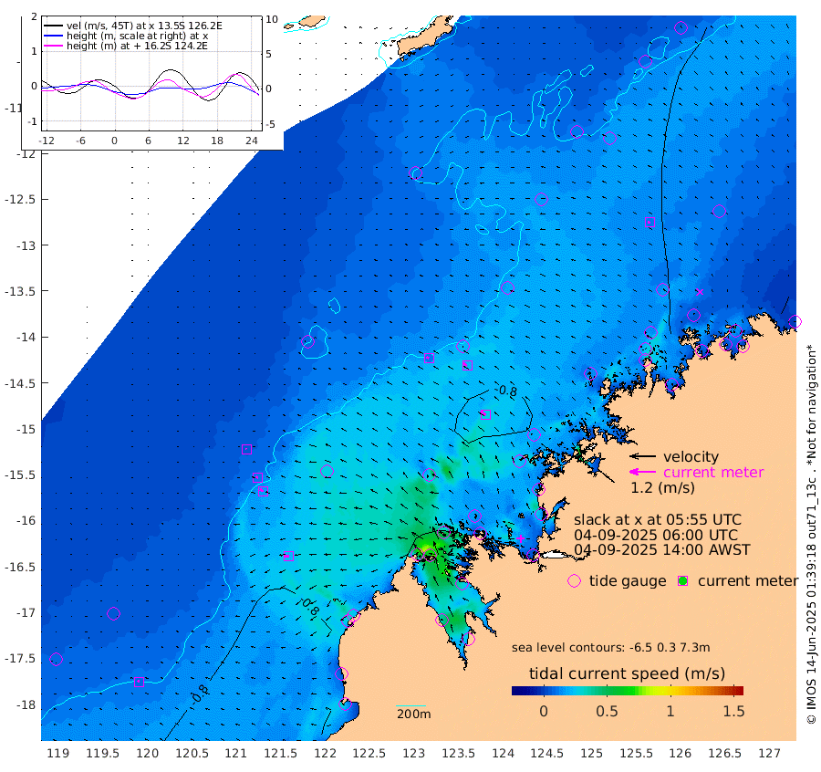 11cm/s -66T +10cm/s rms + 1cm/s 1T. NWSBRW 205m 10cm/s -55T +11cm/s rms + 6cm/s -110T. NWSROW 199m 28cm/s -52T +5cm/s rms + 2cm/s 65T. CAM050 58m 23cm/s -56T +12cm/s rms + 5cm/s 92T. CAM100 99m 6cm/s -80T +7cm/s rms + 1cm/s -85T. KIM400 396m 11cm/s -70T +9cm/s rms + 5cm/s -119T. KIM200 208m 18cm/s -66T +11cm/s rms + 5cm/s -147T. KIM100 99m 23cm/s -87T +8cm/s rms + 3cm/s -103T. KIM050 59m 11cm/s -82T +4cm/s rms + 2cm/s 23T. TIMORS88 91m -24cm Imperieuse Reef -64cm Mermaid Reef -86cm Broome -71cm Cape Baskerville -64cm Red Bluff -65cm Cape Boileau -63cm Scott Reef (WA) -66cm Ashmore Reef -48cm Karrakatta Bay -36cm Sunday Island 5cm Valentine Island 32cm Derby 4cm Port Usborne -49cm Bedford Islands -63cm Yampi Sound (Koolan Island) -113cm Macleay Island -87cm Adele Island -68cm Browse Island -60cm Shale Island -76cm Lizard Island -161cm Hall Point -62cm Degerando Island -72cm White Island -77cm Skua No. 4 Well -98cm Jabiru -84cm Maret Island -69cm Baudin Island -69cm Cape Voltaire (Krait Bay) -59cm Dillon Shoal -82cm Laminaria -58cm Port Warrender -63cm Troughton Island -78cm Cassini Island -70cm West Holothuria Reef Offshore -46cm Jar Island -61cm Lynher Bank -79cm Heywood Shoal -73cm Pee Shoal -46cm Van Cloon Shoal -40cm Carronade Island -45cm Guy Point -45cm Napier Broome Bay -10cm Lesueur Island