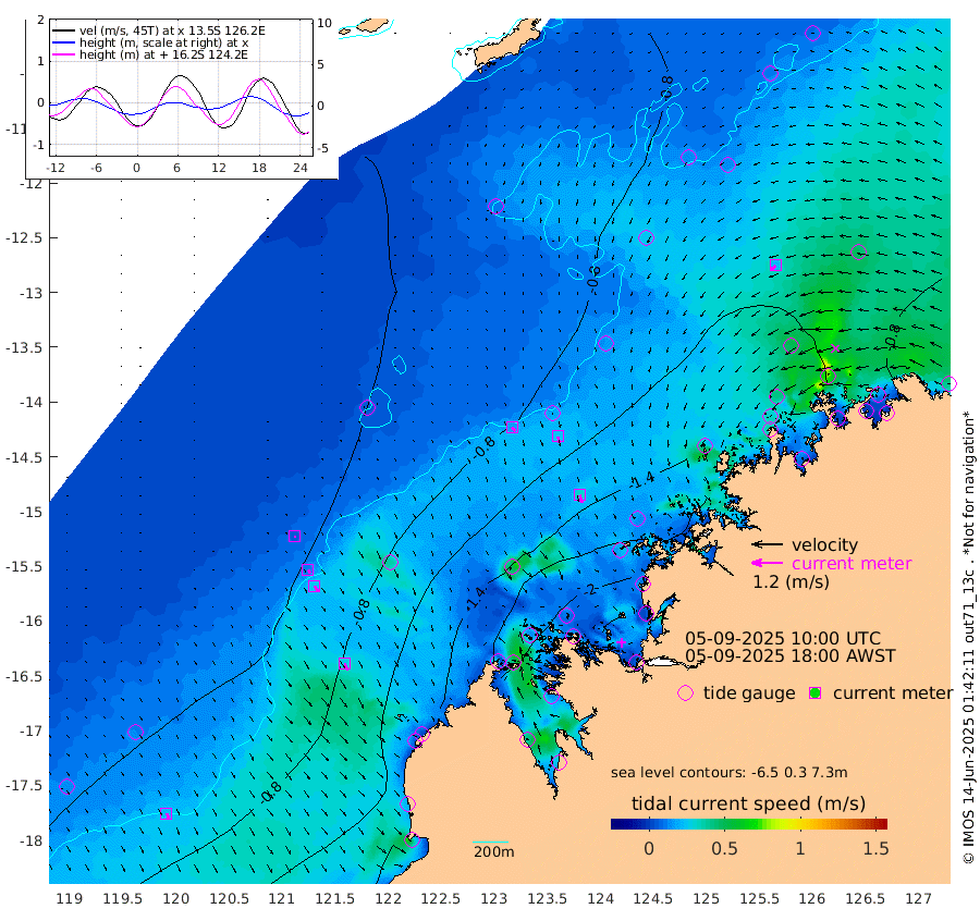 17cm/s 137T +10cm/s rms + 1cm/s 1T. NWSBRW 205m 22cm/s 152T +11cm/s rms + 6cm/s -110T. NWSROW 199m 31cm/s 159T +5cm/s rms + 2cm/s 65T. CAM050 58m 24cm/s 161T +12cm/s rms + 5cm/s 92T. CAM100 99m 6cm/s 152T +7cm/s rms + 1cm/s -85T. KIM400 396m 13cm/s 145T +9cm/s rms + 5cm/s -119T. KIM200 208m 25cm/s 153T +11cm/s rms + 5cm/s -147T. KIM100 99m 27cm/s 157T +8cm/s rms + 3cm/s -103T. KIM050 59m 23cm/s -129T +4cm/s rms + 2cm/s 23T. TIMORS88 91m -99cm Imperieuse Reef -54cm Mermaid Reef -132cm Broome -107cm Cape Baskerville -169cm Red Bluff -117cm Cape Boileau -53cm Scott Reef (WA) -83cm Ashmore Reef -189cm Karrakatta Bay -194cm Sunday Island -215cm Valentine Island -173cm Derby -183cm Port Usborne -188cm Bedford Islands -210cm Yampi Sound (Koolan Island) -212cm Macleay Island -145cm Adele Island -23cm Browse Island -254cm Shale Island -248cm Lizard Island -210cm Hall Point -178cm Degerando Island -149cm White Island -81cm Skua No. 4 Well -79cm Jabiru -125cm Maret Island -112cm Baudin Island -120cm Cape Voltaire (Krait Bay) -90cm Dillon Shoal -44cm Laminaria -159cm Port Warrender -109cm Troughton Island -120cm Cassini Island -99cm West Holothuria Reef Offshore -99cm Jar Island -88cm Lynher Bank -107cm Heywood Shoal -93cm Pee Shoal -88cm Van Cloon Shoal -75cm Carronade Island -76cm Guy Point -86cm Napier Broome Bay -41cm Lesueur Island