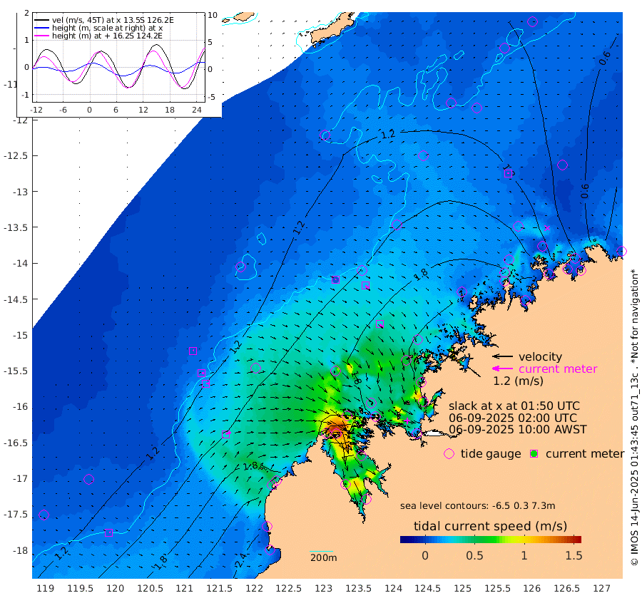 6cm/s 51T +10cm/s rms + 1cm/s 1T. NWSBRW 205m 8cm/s 79T +11cm/s rms + 6cm/s -110T. NWSROW 199m 30cm/s 137T +5cm/s rms + 2cm/s 65T. CAM050 58m 21cm/s 125T +12cm/s rms + 5cm/s 92T. CAM100 99m 6cm/s 76T +7cm/s rms + 1cm/s -85T. KIM400 396m 11cm/s 88T +9cm/s rms + 5cm/s -119T. KIM200 208m 18cm/s 88T +11cm/s rms + 5cm/s -147T. KIM100 99m 32cm/s 63T +8cm/s rms + 3cm/s -103T. KIM050 59m 5cm/s -6T +4cm/s rms + 2cm/s 23T. TIMORS88 91m 78cm Imperieuse Reef 109cm Mermaid Reef 242cm Broome 190cm Cape Baskerville 206cm Red Bluff 193cm Cape Boileau 106cm Scott Reef (WA) 123cm Ashmore Reef 184cm Karrakatta Bay 144cm Sunday Island 23cm Valentine Island -67cm Derby 27cm Port Usborne 197cm Bedford Islands 236cm Yampi Sound (Koolan Island) 299cm Macleay Island 210cm Adele Island 142cm Browse Island 259cm Shale Island 245cm Lizard Island 282cm Hall Point 226cm Degerando Island 218cm White Island 138cm Skua No. 4 Well 109cm Jabiru 213cm Maret Island 191cm Baudin Island 189cm Cape Voltaire (Krait Bay) 102cm Dillon Shoal 81cm Laminaria 203cm Port Warrender 148cm Troughton Island 194cm Cassini Island 148cm West Holothuria Reef Offshore 129cm Jar Island 135cm Lynher Bank 172cm Heywood Shoal 124cm Pee Shoal 91cm Van Cloon Shoal 94cm Carronade Island 98cm Guy Point 103cm Napier Broome Bay 17cm Lesueur Island