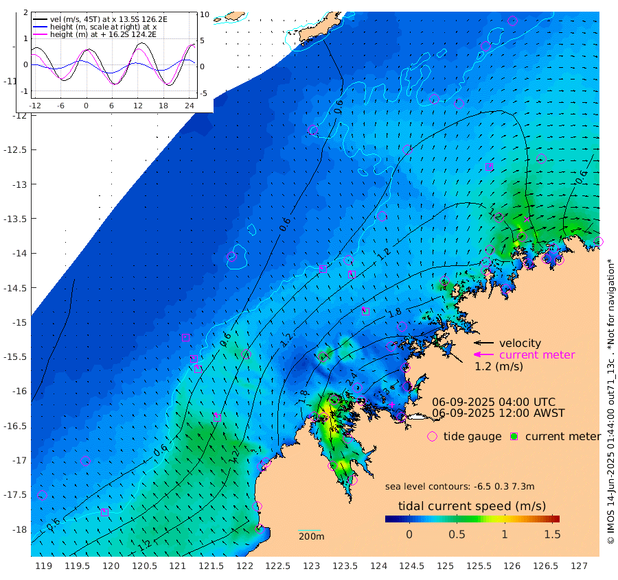 18cm/s -47T +10cm/s rms + 1cm/s 1T. NWSBRW 205m 25cm/s -31T +11cm/s rms + 6cm/s -110T. NWSROW 199m 34cm/s -29T +5cm/s rms + 2cm/s 65T. CAM050 58m 28cm/s -26T +12cm/s rms + 5cm/s 92T. CAM100 99m 8cm/s -34T +7cm/s rms + 1cm/s -85T. KIM400 396m 15cm/s -33T +9cm/s rms + 5cm/s -119T. KIM200 208m 28cm/s -27T +11cm/s rms + 5cm/s -147T. KIM100 99m 34cm/s -22T +8cm/s rms + 3cm/s -103T. KIM050 59m 18cm/s 27T +4cm/s rms + 2cm/s 23T. TIMORS88 91m 102cm Imperieuse Reef 45cm Mermaid Reef 160cm Broome 124cm Cape Baskerville 192cm Red Bluff 129cm Cape Boileau 42cm Scott Reef (WA) 76cm Ashmore Reef 232cm Karrakatta Bay 216cm Sunday Island 237cm Valentine Island 176cm Derby 205cm Port Usborne 221cm Bedford Islands 253cm Yampi Sound (Koolan Island) 270cm Macleay Island 165cm Adele Island 31cm Browse Island 319cm Shale Island 279cm Lizard Island 241cm Hall Point 208cm Degerando Island 176cm White Island 74cm Skua No. 4 Well 47cm Jabiru 140cm Maret Island 132cm Baudin Island 126cm Cape Voltaire (Krait Bay) 76cm Dillon Shoal 11cm Laminaria 167cm Port Warrender 101cm Troughton Island 126cm Cassini Island 91cm West Holothuria Reef Offshore 94cm Jar Island 84cm Lynher Bank 101cm Heywood Shoal 76cm Pee Shoal 63cm Van Cloon Shoal 50cm Carronade Island 49cm Guy Point 52cm Napier Broome Bay -8cm Lesueur Island