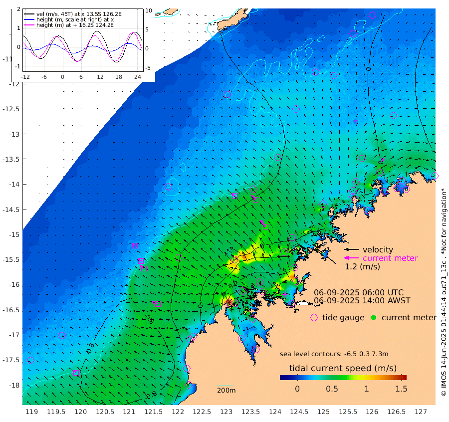 29cm/s -56T +10cm/s rms + 1cm/s 1T. NWSBRW 205m 31cm/s -46T +11cm/s rms + 6cm/s -110T. NWSROW 199m 72cm/s -38T +5cm/s rms + 2cm/s 65T. CAM050 58m 54cm/s -40T +12cm/s rms + 5cm/s 92T. CAM100 99m 13cm/s -64T +7cm/s rms + 1cm/s -85T. KIM400 396m 25cm/s -58T +9cm/s rms + 5cm/s -119T. KIM200 208m 45cm/s -51T +11cm/s rms + 5cm/s -147T. KIM100 99m 51cm/s -69T +8cm/s rms + 3cm/s -103T. KIM050 59m 14cm/s 13T +4cm/s rms + 2cm/s 23T. TIMORS88 91m 32cm Imperieuse Reef -70cm Mermaid Reef -87cm Broome -67cm Cape Baskerville -13cm Red Bluff -60cm Cape Boileau -68cm Scott Reef (WA) -48cm Ashmore Reef 62cm Karrakatta Bay 81cm Sunday Island 256cm Valentine Island 277cm Derby 204cm Port Usborne 27cm Bedford Islands 23cm Yampi Sound (Koolan Island) -23cm Macleay Island -46cm Adele Island -115cm Browse Island 71cm Shale Island 43cm Lizard Island -43cm Hall Point -17cm Degerando Island -41cm White Island -65cm Skua No. 4 Well -67cm Jabiru -73cm Maret Island -55cm Baudin Island -62cm Cape Voltaire (Krait Bay) -22cm Dillon Shoal -80cm Laminaria -25cm Port Warrender -35cm Troughton Island -66cm Cassini Island -53cm West Holothuria Reef Offshore -24cm Jar Island -56cm Lynher Bank -73cm Heywood Shoal -46cm Pee Shoal -20cm Van Cloon Shoal -34cm Carronade Island -38cm Guy Point -41cm Napier Broome Bay -7cm Lesueur Island