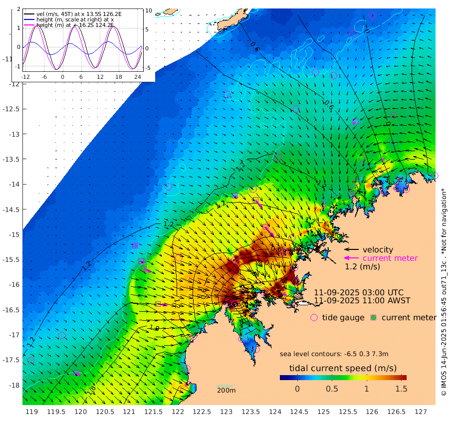 31cm/s 121T +10cm/s rms + 1cm/s 1T. NWSBRW 205m 43cm/s 132T +11cm/s rms + 6cm/s -110T. NWSROW 199m 115cm/s 142T +5cm/s rms + 2cm/s 65T. CAM050 58m 80cm/s 139T +12cm/s rms + 5cm/s 92T. CAM100 99m 17cm/s 112T +7cm/s rms + 1cm/s -85T. KIM400 396m 36cm/s 115T +9cm/s rms + 5cm/s -119T. KIM200 208m 64cm/s 122T +11cm/s rms + 5cm/s -147T. KIM100 99m 80cm/s 98T +8cm/s rms + 3cm/s -103T. KIM050 59m 29cm/s -132T +4cm/s rms + 2cm/s 23T. TIMORS88 91m -24cm Imperieuse Reef 131cm Mermaid Reef 280cm Broome 208cm Cape Baskerville 169cm Red Bluff 212cm Cape Boileau 121cm Scott Reef (WA) 90cm Ashmore Reef 4cm Karrakatta Bay -39cm Sunday Island -447cm Valentine Island -550cm Derby -357cm Port Usborne 96cm Bedford Islands 124cm Yampi Sound (Koolan Island) 157cm Macleay Island 157cm Adele Island 226cm Browse Island 65cm Shale Island 79cm Lizard Island 110cm Hall Point 181cm Degerando Island 203cm White Island 110cm Skua No. 4 Well 33cm Jabiru 210cm Maret Island 184cm Baudin Island 192cm Cape Voltaire (Krait Bay) 27cm Dillon Shoal 79cm Laminaria 177cm Port Warrender 84cm Troughton Island 177cm Cassini Island 124cm West Holothuria Reef Offshore 90cm Jar Island 145cm Lynher Bank 182cm Heywood Shoal 67cm Pee Shoal 37cm Van Cloon Shoal 79cm Carronade Island 84cm Guy Point 90cm Napier Broome Bay -20cm Lesueur Island