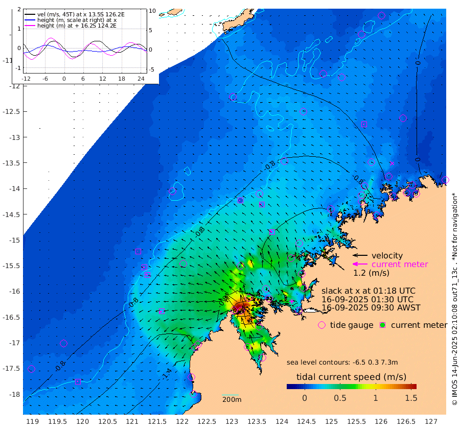 5cm/s -93T +10cm/s rms + 1cm/s 1T. NWSBRW 205m 7cm/s -72T +11cm/s rms + 6cm/s -110T. NWSROW 199m 22cm/s -50T +5cm/s rms + 2cm/s 65T. CAM050 58m 18cm/s -65T +12cm/s rms + 5cm/s 92T. CAM100 99m 6cm/s -89T +7cm/s rms + 1cm/s -85T. KIM400 396m 11cm/s -81T +9cm/s rms + 5cm/s -119T. KIM200 208m 16cm/s -74T +11cm/s rms + 5cm/s -147T. KIM100 99m 23cm/s -112T +8cm/s rms + 3cm/s -103T. KIM050 59m 8cm/s -61T +4cm/s rms + 2cm/s 23T. TIMORS88 91m -30cm Imperieuse Reef -72cm Mermaid Reef -152cm Broome -105cm Cape Baskerville -115cm Red Bluff -98cm Cape Boileau -59cm Scott Reef (WA) -55cm Ashmore Reef -85cm Karrakatta Bay -84cm Sunday Island 72cm Valentine Island 115cm Derby 34cm Port Usborne -118cm Bedford Islands -151cm Yampi Sound (Koolan Island) -124cm Macleay Island -98cm Adele Island -63cm Browse Island -164cm Shale Island -180cm Lizard Island -137cm Hall Point -132cm Degerando Island -146cm White Island -53cm Skua No. 4 Well -44cm Jabiru -106cm Maret Island -105cm Baudin Island -100cm Cape Voltaire (Krait Bay) -26cm Dillon Shoal -56cm Laminaria -103cm Port Warrender -42cm Troughton Island -78cm Cassini Island -63cm West Holothuria Reef Offshore -58cm Jar Island -96cm Lynher Bank -97cm Heywood Shoal -34cm Pee Shoal -23cm Van Cloon Shoal -33cm Carronade Island -38cm Guy Point -31cm Napier Broome Bay 12cm Lesueur Island