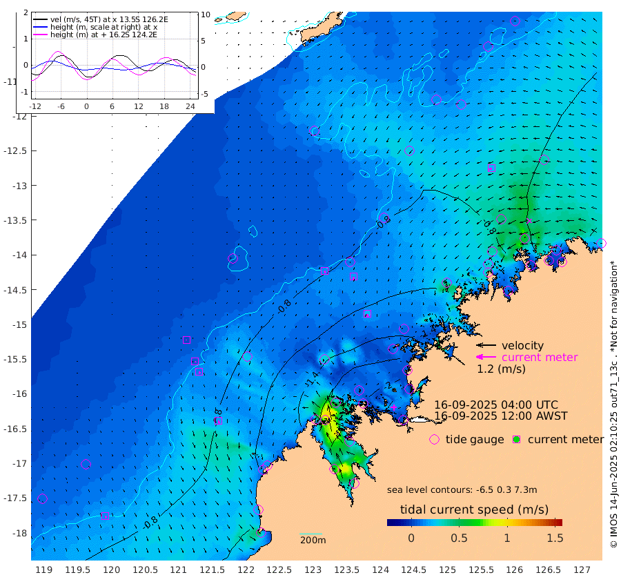 13cm/s 149T +10cm/s rms + 1cm/s 1T. NWSBRW 205m 13cm/s 157T +11cm/s rms + 6cm/s -110T. NWSROW 199m 22cm/s 171T +5cm/s rms + 2cm/s 65T. CAM050 58m 17cm/s 176T +12cm/s rms + 5cm/s 92T. CAM100 99m 3cm/s -154T +7cm/s rms + 1cm/s -85T. KIM400 396m 5cm/s 166T +9cm/s rms + 5cm/s -119T. KIM200 208m 12cm/s 165T +11cm/s rms + 5cm/s -147T. KIM100 99m 16cm/s 162T +8cm/s rms + 3cm/s -103T. KIM050 59m 22cm/s -114T +4cm/s rms + 2cm/s 23T. TIMORS88 91m -72cm Imperieuse Reef -51cm Mermaid Reef -80cm Broome -58cm Cape Baskerville -61cm Red Bluff -57cm Cape Boileau -53cm Scott Reef (WA) -63cm Ashmore Reef -135cm Karrakatta Bay -153cm Sunday Island -177cm Valentine Island -179cm Derby -183cm Port Usborne -133cm Bedford Islands -142cm Yampi Sound (Koolan Island) -167cm Macleay Island -100cm Adele Island -13cm Browse Island -184cm Shale Island -201cm Lizard Island -143cm Hall Point -103cm Degerando Island -93cm White Island -69cm Skua No. 4 Well -99cm Jabiru -73cm Maret Island -62cm Baudin Island -63cm Cape Voltaire (Krait Bay) -68cm Dillon Shoal -70cm Laminaria -61cm Port Warrender -57cm Troughton Island -57cm Cassini Island -53cm West Holothuria Reef Offshore -45cm Jar Island -74cm Lynher Bank -69cm Heywood Shoal -69cm Pee Shoal -44cm Van Cloon Shoal -24cm Carronade Island -31cm Guy Point -27cm Napier Broome Bay -3cm Lesueur Island