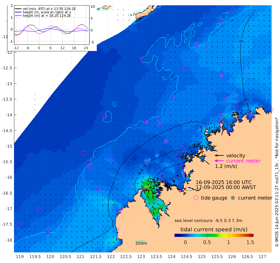 11cm/s 134T +10cm/s rms + 1cm/s 1T. NWSBRW 205m 8cm/s 153T +11cm/s rms + 6cm/s -110T. NWSROW 199m 14cm/s 136T +5cm/s rms + 2cm/s 65T. CAM050 58m 13cm/s 138T +12cm/s rms + 5cm/s 92T. CAM100 99m 1cm/s 171T +7cm/s rms + 1cm/s -85T. KIM400 396m 3cm/s 154T +9cm/s rms + 5cm/s -119T. KIM200 208m 9cm/s 155T +11cm/s rms + 5cm/s -147T. KIM100 99m 12cm/s 134T +8cm/s rms + 3cm/s -103T. KIM050 59m 13cm/s 119T +4cm/s rms + 2cm/s 23T. TIMORS88 91m -22cm Imperieuse Reef -1cm Mermaid Reef -29cm Broome -8cm Cape Baskerville 9cm Red Bluff -9cm Cape Boileau -5cm Scott Reef (WA) -2cm Ashmore Reef -58cm Karrakatta Bay -56cm Sunday Island -104cm Valentine Island -94cm Derby -107cm Port Usborne -54cm Bedford Islands -68cm Yampi Sound (Koolan Island) -102cm Macleay Island -35cm Adele Island -12cm Browse Island -101cm Shale Island -127cm Lizard Island -60cm Hall Point -40cm Degerando Island -41cm White Island -6cm Skua No. 4 Well -6cm Jabiru -21cm Maret Island -9cm Baudin Island -11cm Cape Voltaire (Krait Bay) 6cm Dillon Shoal 14cm Laminaria -12cm Port Warrender -1cm Troughton Island 1cm Cassini Island 6cm West Holothuria Reef Offshore 4cm Jar Island -18cm Lynher Bank 4cm Heywood Shoal 3cm Pee Shoal 20cm Van Cloon Shoal 22cm Carronade Island 22cm Guy Point 27cm Napier Broome Bay 45cm Lesueur Island
