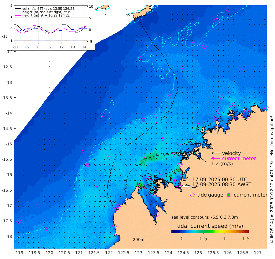 11cm/s -45T +10cm/s rms + 1cm/s 1T. NWSBRW 205m 11cm/s -35T +11cm/s rms + 6cm/s -110T. NWSROW 199m 20cm/s -30T +5cm/s rms + 2cm/s 65T. CAM050 58m 16cm/s -34T +12cm/s rms + 5cm/s 92T. CAM100 99m 4cm/s -46T +7cm/s rms + 1cm/s -85T. KIM400 396m 8cm/s -48T +9cm/s rms + 5cm/s -119T. KIM200 208m 15cm/s -37T +11cm/s rms + 5cm/s -147T. KIM100 99m 14cm/s -53T +8cm/s rms + 3cm/s -103T. KIM050 59m 11cm/s 6T +4cm/s rms + 2cm/s 23T. TIMORS88 91m 45cm Imperieuse Reef 5cm Mermaid Reef 5cm Broome 8cm Cape Baskerville -3cm Red Bluff 18cm Cape Boileau 18cm Scott Reef (WA) 28cm Ashmore Reef 67cm Karrakatta Bay 72cm Sunday Island 166cm Valentine Island 179cm Derby 151cm Port Usborne 52cm Bedford Islands 43cm Yampi Sound (Koolan Island) 97cm Macleay Island 46cm Adele Island 5cm Browse Island 65cm Shale Island 63cm Lizard Island 33cm Hall Point 33cm Degerando Island 10cm White Island 39cm Skua No. 4 Well 49cm Jabiru 25cm Maret Island 9cm Baudin Island 21cm Cape Voltaire (Krait Bay) 48cm Dillon Shoal 14cm Laminaria 23cm Port Warrender 47cm Troughton Island 31cm Cassini Island 25cm West Holothuria Reef Offshore 22cm Jar Island 13cm Lynher Bank 16cm Heywood Shoal 47cm Pee Shoal 34cm Van Cloon Shoal 19cm Carronade Island 22cm Guy Point 26cm Napier Broome Bay 19cm Lesueur Island