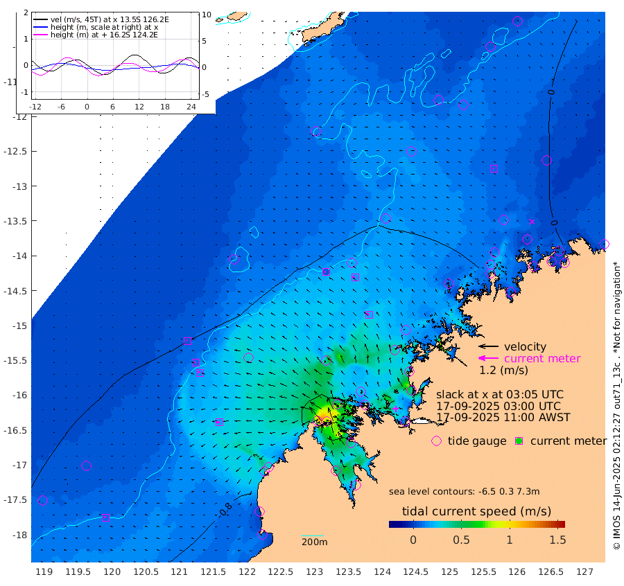 6cm/s -90T +10cm/s rms + 1cm/s 1T. NWSBRW 205m 9cm/s -58T +11cm/s rms + 6cm/s -110T. NWSROW 199m 19cm/s -50T +5cm/s rms + 2cm/s 65T. CAM050 58m 16cm/s -58T +12cm/s rms + 5cm/s 92T. CAM100 99m 6cm/s -77T +7cm/s rms + 1cm/s -85T. KIM400 396m 10cm/s -68T +9cm/s rms + 5cm/s -119T. KIM200 208m 15cm/s -61T +11cm/s rms + 5cm/s -147T. KIM100 99m 16cm/s -90T +8cm/s rms + 3cm/s -103T. KIM050 59m 7cm/s -62T +4cm/s rms + 2cm/s 23T. TIMORS88 91m -9cm Imperieuse Reef -47cm Mermaid Reef -71cm Broome -49cm Cape Baskerville -38cm Red Bluff -42cm Cape Boileau -40cm Scott Reef (WA) -31cm Ashmore Reef -30cm Karrakatta Bay -37cm Sunday Island 44cm Valentine Island 61cm Derby 22cm Port Usborne -47cm Bedford Islands -64cm Yampi Sound (Koolan Island) -59cm Macleay Island -47cm Adele Island -38cm Browse Island -65cm Shale Island -94cm Lizard Island -94cm Hall Point -51cm Degerando Island -72cm White Island -32cm Skua No. 4 Well -49cm Jabiru -49cm Maret Island -50cm Baudin Island -43cm Cape Voltaire (Krait Bay) -15cm Dillon Shoal -52cm Laminaria -38cm Port Warrender -17cm Troughton Island -29cm Cassini Island -33cm West Holothuria Reef Offshore -24cm Jar Island -57cm Lynher Bank -49cm Heywood Shoal -20cm Pee Shoal -11cm Van Cloon Shoal -16cm Carronade Island -21cm Guy Point -14cm Napier Broome Bay 2cm Lesueur Island