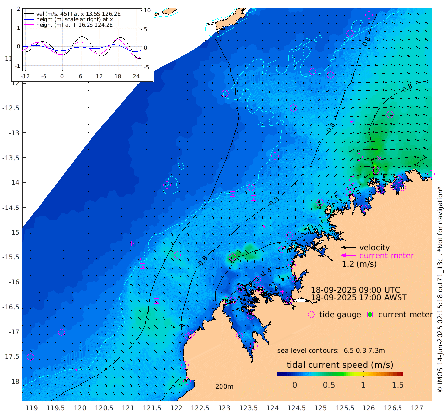 13cm/s 139T +10cm/s rms + 1cm/s 1T. NWSBRW 205m 17cm/s 151T +11cm/s rms + 6cm/s -110T. NWSROW 199m 25cm/s 163T +5cm/s rms + 2cm/s 65T. CAM050 58m 20cm/s 163T +12cm/s rms + 5cm/s 92T. CAM100 99m 5cm/s 149T +7cm/s rms + 1cm/s -85T. KIM400 396m 11cm/s 142T +9cm/s rms + 5cm/s -119T. KIM200 208m 21cm/s 151T +11cm/s rms + 5cm/s -147T. KIM100 99m 21cm/s 157T +8cm/s rms + 3cm/s -103T. KIM050 59m 21cm/s -123T +4cm/s rms + 2cm/s 23T. TIMORS88 91m -83cm Imperieuse Reef -41cm Mermaid Reef -93cm Broome -79cm Cape Baskerville -118cm Red Bluff -91cm Cape Boileau -45cm Scott Reef (WA) -70cm Ashmore Reef -151cm Karrakatta Bay -154cm Sunday Island -166cm Valentine Island -155cm Derby -156cm Port Usborne -150cm Bedford Islands -146cm Yampi Sound (Koolan Island) -161cm Macleay Island -112cm Adele Island -16cm Browse Island -178cm Shale Island -153cm Lizard Island -95cm Hall Point -131cm Degerando Island -91cm White Island -76cm Skua No. 4 Well -73cm Jabiru -94cm Maret Island -81cm Baudin Island -89cm Cape Voltaire (Krait Bay) -83cm Dillon Shoal -42cm Laminaria -104cm Port Warrender -89cm Troughton Island -100cm Cassini Island -75cm West Holothuria Reef Offshore -73cm Jar Island -63cm Lynher Bank -84cm Heywood Shoal -86cm Pee Shoal -76cm Van Cloon Shoal -56cm Carronade Island -56cm Guy Point -69cm Napier Broome Bay -37cm Lesueur Island