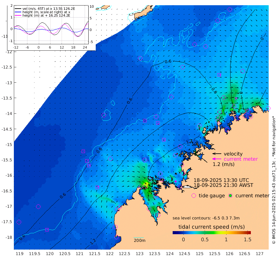 4cm/s 30T +10cm/s rms + 1cm/s 1T. NWSBRW 205m 5cm/s 39T +11cm/s rms + 6cm/s -110T. NWSROW 199m 15cm/s 119T +5cm/s rms + 2cm/s 65T. CAM050 58m 11cm/s 109T +12cm/s rms + 5cm/s 92T. CAM100 99m 4cm/s 76T +7cm/s rms + 1cm/s -85T. KIM400 396m 6cm/s 70T +9cm/s rms + 5cm/s -119T. KIM200 208m 10cm/s 67T +11cm/s rms + 5cm/s -147T. KIM100 99m 18cm/s 57T +8cm/s rms + 3cm/s -103T. KIM050 59m 16cm/s 81T +4cm/s rms + 2cm/s 23T. TIMORS88 91m 41cm Imperieuse Reef 56cm Mermaid Reef 137cm Broome 105cm Cape Baskerville 115cm Red Bluff 93cm Cape Boileau 58cm Scott Reef (WA) 61cm Ashmore Reef 120cm Karrakatta Bay 110cm Sunday Island 59cm Valentine Island 7cm Derby 64cm Port Usborne 156cm Bedford Islands 147cm Yampi Sound (Koolan Island) 209cm Macleay Island 135cm Adele Island 67cm Browse Island 167cm Shale Island 155cm Lizard Island 139cm Hall Point 136cm Degerando Island 112cm White Island 74cm Skua No. 4 Well 55cm Jabiru 114cm Maret Island 87cm Baudin Island 85cm Cape Voltaire (Krait Bay) 38cm Dillon Shoal 46cm Laminaria 82cm Port Warrender 46cm Troughton Island 90cm Cassini Island 55cm West Holothuria Reef Offshore 24cm Jar Island 80cm Lynher Bank 79cm Heywood Shoal 65cm Pee Shoal 14cm Van Cloon Shoal -7cm Carronade Island -7cm Guy Point -9cm Napier Broome Bay -74cm Lesueur Island