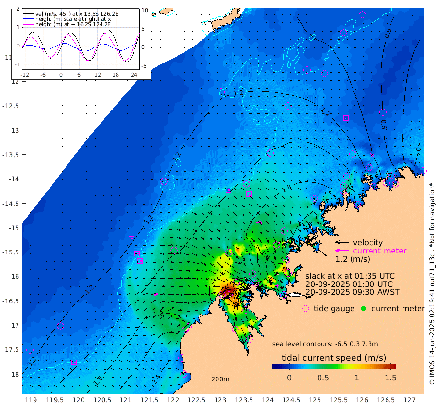 9cm/s 88T +10cm/s rms + 1cm/s 1T. NWSBRW 205m 13cm/s 104T +11cm/s rms + 6cm/s -110T. NWSROW 199m 45cm/s 137T +5cm/s rms + 2cm/s 65T. CAM050 58m 31cm/s 129T +12cm/s rms + 5cm/s 92T. CAM100 99m 8cm/s 89T +7cm/s rms + 1cm/s -85T. KIM400 396m 16cm/s 99T +9cm/s rms + 5cm/s -119T. KIM200 208m 26cm/s 102T +11cm/s rms + 5cm/s -147T. KIM100 99m 41cm/s 73T +8cm/s rms + 3cm/s -103T. KIM050 59m 3cm/s -67T +4cm/s rms + 2cm/s 23T. TIMORS88 91m 64cm Imperieuse Reef 123cm Mermaid Reef 261cm Broome 201cm Cape Baskerville 192cm Red Bluff 209cm Cape Boileau 121cm Scott Reef (WA) 120cm Ashmore Reef 160cm Karrakatta Bay 143cm Sunday Island -53cm Valentine Island -132cm Derby -18cm Port Usborne 206cm Bedford Islands 234cm Yampi Sound (Koolan Island) 303cm Macleay Island 216cm Adele Island 162cm Browse Island 239cm Shale Island 231cm Lizard Island 229cm Hall Point 235cm Degerando Island 230cm White Island 138cm Skua No. 4 Well 102cm Jabiru 217cm Maret Island 193cm Baudin Island 196cm Cape Voltaire (Krait Bay) 97cm Dillon Shoal 91cm Laminaria 206cm Port Warrender 133cm Troughton Island 189cm Cassini Island 146cm West Holothuria Reef Offshore 118cm Jar Island 155cm Lynher Bank 184cm Heywood Shoal 117cm Pee Shoal 81cm Van Cloon Shoal 89cm Carronade Island 99cm Guy Point 100cm Napier Broome Bay 2cm Lesueur Island