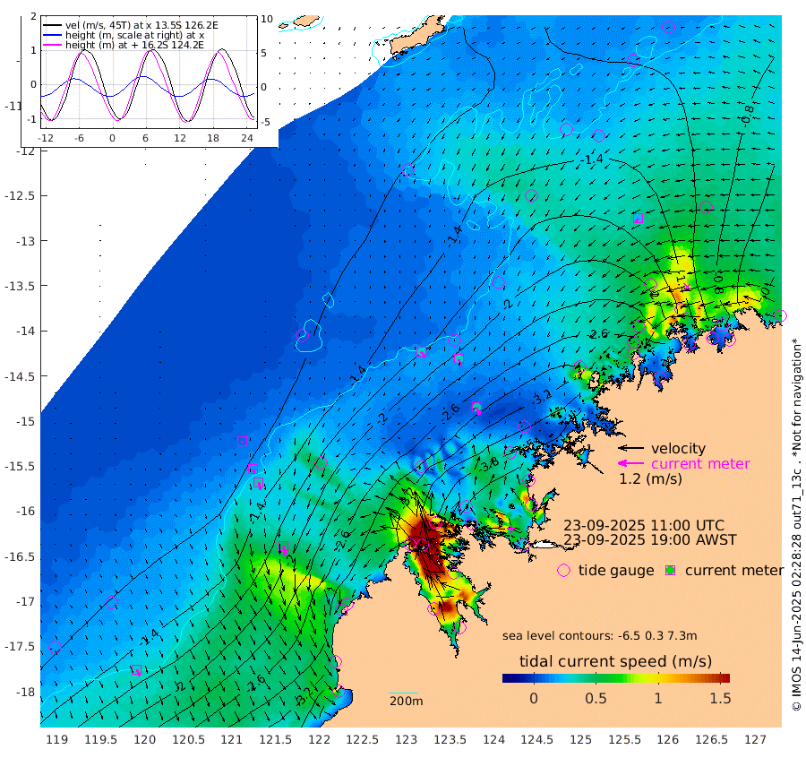 34cm/s 141T +10cm/s rms + 1cm/s 1T. NWSBRW 205m 33cm/s 157T +11cm/s rms + 6cm/s -110T. NWSROW 199m 37cm/s 159T +5cm/s rms + 2cm/s 65T. CAM050 58m 34cm/s 163T +12cm/s rms + 5cm/s 92T. CAM100 99m 8cm/s 174T +7cm/s rms + 1cm/s -85T. KIM400 396m 16cm/s 163T +9cm/s rms + 5cm/s -119T. KIM200 208m 37cm/s 166T +11cm/s rms + 5cm/s -147T. KIM100 99m 47cm/s 168T +8cm/s rms + 3cm/s -103T. KIM050 59m 23cm/s -145T +4cm/s rms + 2cm/s 23T. TIMORS88 91m -156cm Imperieuse Reef -103cm Mermaid Reef -313cm Broome -219cm Cape Baskerville -305cm Red Bluff -227cm Cape Boileau -95cm Scott Reef (WA) -128cm Ashmore Reef -356cm Karrakatta Bay -347cm Sunday Island -274cm Valentine Island -174cm Derby -275cm Port Usborne -386cm Bedford Islands -443cm Yampi Sound (Koolan Island) -452cm Macleay Island -284cm Adele Island -85cm Browse Island -539cm Shale Island -551cm Lizard Island -375cm Hall Point -368cm Degerando Island -327cm White Island -129cm Skua No. 4 Well -100cm Jabiru -253cm Maret Island -220cm Baudin Island -228cm Cape Voltaire (Krait Bay) -96cm Dillon Shoal -45cm Laminaria -276cm Port Warrender -143cm Troughton Island -205cm Cassini Island -143cm West Holothuria Reef Offshore -143cm Jar Island -183cm Lynher Bank -183cm Heywood Shoal -118cm Pee Shoal -82cm Van Cloon Shoal -67cm Carronade Island -63cm Guy Point -74cm Napier Broome Bay 48cm Lesueur Island