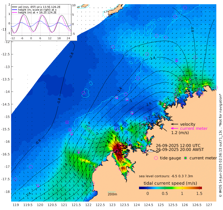 29cm/s 141T +10cm/s rms + 1cm/s 1T. NWSBRW 205m 25cm/s 157T +11cm/s rms + 6cm/s -110T. NWSROW 199m 27cm/s 156T +5cm/s rms + 2cm/s 65T. CAM050 58m 26cm/s 163T +12cm/s rms + 5cm/s 92T. CAM100 99m 7cm/s 175T +7cm/s rms + 1cm/s -85T. KIM400 396m 13cm/s 169T +9cm/s rms + 5cm/s -119T. KIM200 208m 29cm/s 168T +11cm/s rms + 5cm/s -147T. KIM100 99m 40cm/s 171T +8cm/s rms + 3cm/s -103T. KIM050 59m 15cm/s -170T +4cm/s rms + 2cm/s 23T. TIMORS88 91m -125cm Imperieuse Reef -85cm Mermaid Reef -275cm Broome -181cm Cape Baskerville -256cm Red Bluff -189cm Cape Boileau -73cm Scott Reef (WA) -103cm Ashmore Reef -297cm Karrakatta Bay -279cm Sunday Island -184cm Valentine Island -109cm Derby -208cm Port Usborne -306cm Bedford Islands -385cm Yampi Sound (Koolan Island) -383cm Macleay Island -236cm Adele Island -79cm Browse Island -475cm Shale Island -480cm Lizard Island -373cm Hall Point -314cm Degerando Island -294cm White Island -98cm Skua No. 4 Well -78cm Jabiru -215cm Maret Island -193cm Baudin Island -198cm Cape Voltaire (Krait Bay) -74cm Dillon Shoal -25cm Laminaria -235cm Port Warrender -115cm Troughton Island -172cm Cassini Island -120cm West Holothuria Reef Offshore -128cm Jar Island -151cm Lynher Bank -152cm Heywood Shoal -81cm Pee Shoal -60cm Van Cloon Shoal -59cm Carronade Island -52cm Guy Point -62cm Napier Broome Bay 46cm Lesueur Island