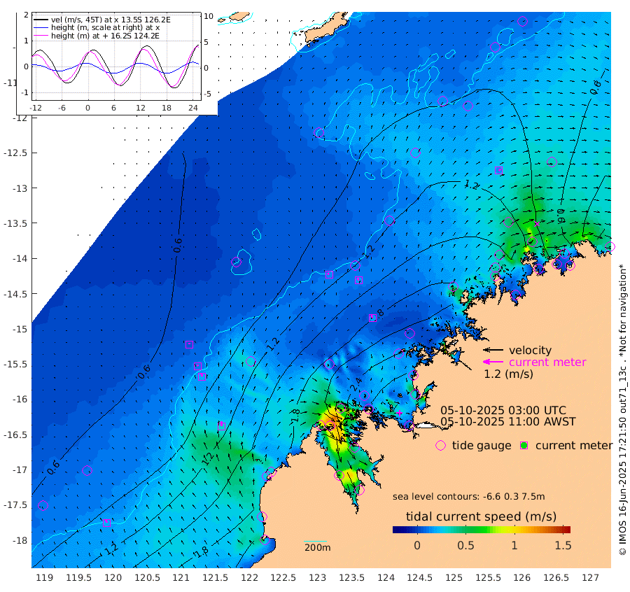 13cm/s -32T +10cm/s rms + 1cm/s 1T. NWSBRW 205m 20cm/s -22T +11cm/s rms + 6cm/s -110T. NWSROW 199m 18cm/s -21T +5cm/s rms + 2cm/s 65T. CAM050 58m 17cm/s -14T +12cm/s rms + 5cm/s 92T. CAM100 99m 6cm/s -12T +7cm/s rms + 1cm/s -85T. KIM400 396m 10cm/s -14T +9cm/s rms + 5cm/s -119T. KIM200 208m 20cm/s -11T +11cm/s rms + 5cm/s -147T. KIM100 99m 30cm/s -2T +8cm/s rms + 3cm/s -103T. KIM050 59m 14cm/s 39T +4cm/s rms + 2cm/s 23T. TIMORS88 91m 103cm Imperieuse Reef 69cm Mermaid Reef 204cm Broome 156cm Cape Baskerville 222cm Red Bluff 158cm Cape Boileau 66cm Scott Reef (WA) 95cm Ashmore Reef 243cm Karrakatta Bay 220cm Sunday Island 192cm Valentine Island 118cm Derby 174cm Port Usborne 244cm Bedford Islands 280cm Yampi Sound (Koolan Island) 313cm Macleay Island 198cm Adele Island 61cm Browse Island 341cm Shale Island 304cm Lizard Island 247cm Hall Point 236cm Degerando Island 205cm White Island 100cm Skua No. 4 Well 64cm Jabiru 174cm Maret Island 155cm Baudin Island 153cm Cape Voltaire (Krait Bay) 88cm Dillon Shoal 37cm Laminaria 183cm Port Warrender 108cm Troughton Island 153cm Cassini Island 107cm West Holothuria Reef Offshore 97cm Jar Island 108cm Lynher Bank 135cm Heywood Shoal 94cm Pee Shoal 62cm Van Cloon Shoal 46cm Carronade Island 47cm Guy Point 49cm Napier Broome Bay -39cm Lesueur Island