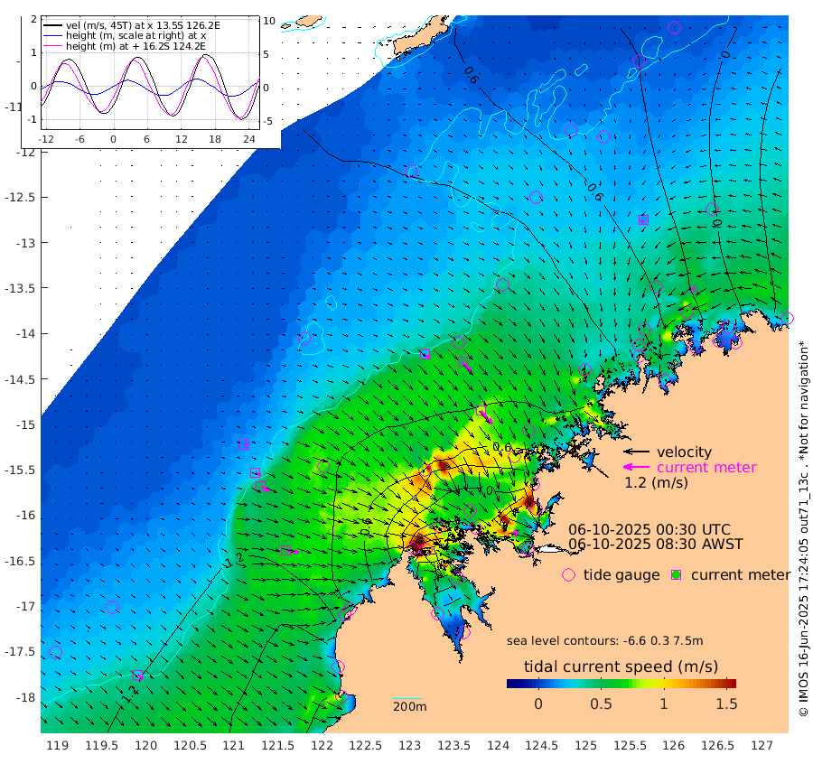 24cm/s 121T +10cm/s rms + 1cm/s 1T. NWSBRW 205m 31cm/s 133T +11cm/s rms + 6cm/s -110T. NWSROW 199m 82cm/s 140T +5cm/s rms + 2cm/s 65T. CAM050 58m 57cm/s 138T +12cm/s rms + 5cm/s 92T. CAM100 99m 13cm/s 109T +7cm/s rms + 1cm/s -85T. KIM400 396m 27cm/s 116T +9cm/s rms + 5cm/s -119T. KIM200 208m 47cm/s 121T +11cm/s rms + 5cm/s -147T. KIM100 99m 58cm/s 99T +8cm/s rms + 3cm/s -103T. KIM050 59m 17cm/s -130T +4cm/s rms + 2cm/s 23T. TIMORS88 91m -4cm Imperieuse Reef 105cm Mermaid Reef 194cm Broome 148cm Cape Baskerville 104cm Red Bluff 153cm Cape Boileau 103cm Scott Reef (WA) 81cm Ashmore Reef 14cm Karrakatta Bay -21cm Sunday Island -267cm Valentine Island -335cm Derby -211cm Port Usborne 63cm Bedford Islands 83cm Yampi Sound (Koolan Island) 143cm Macleay Island 126cm Adele Island 171cm Browse Island 46cm Shale Island 69cm Lizard Island 73cm Hall Point 121cm Degerando Island 137cm White Island 107cm Skua No. 4 Well 61cm Jabiru 155cm Maret Island 127cm Baudin Island 140cm Cape Voltaire (Krait Bay) 48cm Dillon Shoal 85cm Laminaria 117cm Port Warrender 79cm Troughton Island 137cm Cassini Island 100cm West Holothuria Reef Offshore 69cm Jar Island 107cm Lynher Bank 143cm Heywood Shoal 77cm Pee Shoal 41cm Van Cloon Shoal 62cm Carronade Island 69cm Guy Point 74cm Napier Broome Bay -11cm Lesueur Island