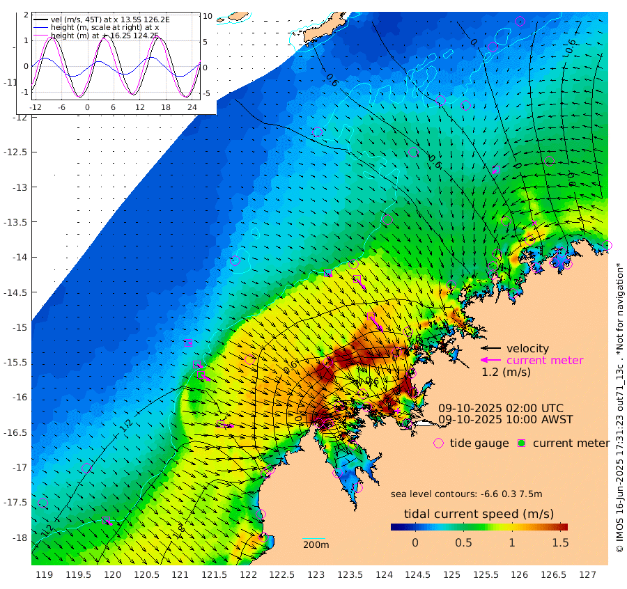 34cm/s 122T +10cm/s rms + 1cm/s 1T. NWSBRW 205m 45cm/s 133T +11cm/s rms + 6cm/s -110T. NWSROW 199m 117cm/s 142T +5cm/s rms + 2cm/s 65T. CAM050 58m 82cm/s 140T +12cm/s rms + 5cm/s 92T. CAM100 99m 18cm/s 113T +7cm/s rms + 1cm/s -85T. KIM400 396m 37cm/s 117T +9cm/s rms + 5cm/s -119T. KIM200 208m 66cm/s 123T +11cm/s rms + 5cm/s -147T. KIM100 99m 81cm/s 100T +8cm/s rms + 3cm/s -103T. KIM050 59m 32cm/s -133T +4cm/s rms + 2cm/s 23T. TIMORS88 91m -41cm Imperieuse Reef 119cm Mermaid Reef 254cm Broome 188cm Cape Baskerville 142cm Red Bluff 188cm Cape Boileau 109cm Scott Reef (WA) 72cm Ashmore Reef -21cm Karrakatta Bay -62cm Sunday Island -457cm Valentine Island -554cm Derby -369cm Port Usborne 71cm Bedford Islands 92cm Yampi Sound (Koolan Island) 136cm Macleay Island 137cm Adele Island 216cm Browse Island 27cm Shale Island 39cm Lizard Island 58cm Hall Point 150cm Degerando Island 176cm White Island 95cm Skua No. 4 Well 17cm Jabiru 184cm Maret Island 158cm Baudin Island 165cm Cape Voltaire (Krait Bay) 11cm Dillon Shoal 70cm Laminaria 143cm Port Warrender 57cm Troughton Island 151cm Cassini Island 101cm West Holothuria Reef Offshore 62cm Jar Island 127cm Lynher Bank 159cm Heywood Shoal 49cm Pee Shoal 14cm Van Cloon Shoal 51cm Carronade Island 56cm Guy Point 59cm Napier Broome Bay -49cm Lesueur Island