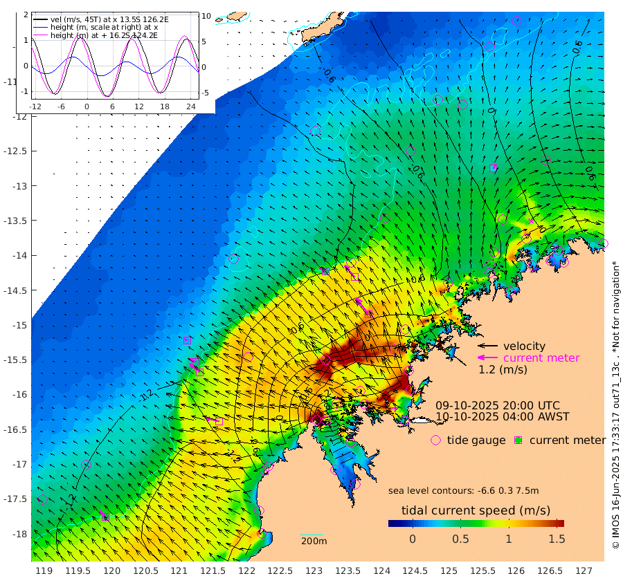 48cm/s -57T +10cm/s rms + 1cm/s 1T. NWSBRW 205m 52cm/s -47T +11cm/s rms + 6cm/s -110T. NWSROW 199m 128cm/s -36T +5cm/s rms + 2cm/s 65T. CAM050 58m 93cm/s -39T +12cm/s rms + 5cm/s 92T. CAM100 99m 20cm/s -65T +7cm/s rms + 1cm/s -85T. KIM400 396m 42cm/s -61T +9cm/s rms + 5cm/s -119T. KIM200 208m 77cm/s -52T +11cm/s rms + 5cm/s -147T. KIM100 99m 89cm/s -76T +8cm/s rms + 3cm/s -103T. KIM050 59m 32cm/s 29T +4cm/s rms + 2cm/s 23T. TIMORS88 91m 54cm Imperieuse Reef -127cm Mermaid Reef -218cm Broome -173cm Cape Baskerville -111cm Red Bluff -165cm Cape Boileau -117cm Scott Reef (WA) -78cm Ashmore Reef 75cm Karrakatta Bay 107cm Sunday Island 496cm Valentine Island 582cm Derby 416cm Port Usborne -21cm Bedford Islands -30cm Yampi Sound (Koolan Island) -62cm Macleay Island -106cm Adele Island -206cm Browse Island 58cm Shale Island 55cm Lizard Island 0cm Hall Point -102cm Degerando Island -139cm White Island -99cm Skua No. 4 Well -20cm Jabiru -164cm Maret Island -146cm Baudin Island -152cm Cape Voltaire (Krait Bay) -27cm Dillon Shoal -103cm Laminaria -127cm Port Warrender -66cm Troughton Island -142cm Cassini Island -108cm West Holothuria Reef Offshore -65cm Jar Island -119cm Lynher Bank -165cm Heywood Shoal -60cm Pee Shoal -30cm Van Cloon Shoal -74cm Carronade Island -87cm Guy Point -75cm Napier Broome Bay 0cm Lesueur Island