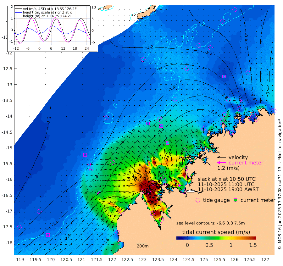 8cm/s 166T +10cm/s rms + 1cm/s 1T. NWSBRW 205m 9cm/s -149T +11cm/s rms + 6cm/s -110T. NWSROW 199m 26cm/s -45T +5cm/s rms + 2cm/s 65T. CAM050 58m 16cm/s -73T +12cm/s rms + 5cm/s 92T. CAM100 99m 7cm/s -119T +7cm/s rms + 1cm/s -85T. KIM400 396m 14cm/s -110T +9cm/s rms + 5cm/s -119T. KIM200 208m 23cm/s -116T +11cm/s rms + 5cm/s -147T. KIM100 99m 43cm/s -136T +8cm/s rms + 3cm/s -103T. KIM050 59m 13cm/s 109T +4cm/s rms + 2cm/s 23T. TIMORS88 91m -107cm Imperieuse Reef -136cm Mermaid Reef -375cm Broome -264cm Cape Baskerville -286cm Red Bluff -265cm Cape Boileau -122cm Scott Reef (WA) -134cm Ashmore Reef -270cm Karrakatta Bay -226cm Sunday Island 17cm Valentine Island 145cm Derby -33cm Port Usborne -331cm Bedford Islands -399cm Yampi Sound (Koolan Island) -412cm Macleay Island -278cm Adele Island -182cm Browse Island -451cm Shale Island -461cm Lizard Island -345cm Hall Point -365cm Degerando Island -351cm White Island -143cm Skua No. 4 Well -98cm Jabiru -293cm Maret Island -264cm Baudin Island -269cm Cape Voltaire (Krait Bay) -73cm Dillon Shoal -55cm Laminaria -296cm Port Warrender -160cm Troughton Island -241cm Cassini Island -165cm West Holothuria Reef Offshore -165cm Jar Island -204cm Lynher Bank -213cm Heywood Shoal -107cm Pee Shoal -75cm Van Cloon Shoal -96cm Carronade Island -93cm Guy Point -100cm Napier Broome Bay 20cm Lesueur Island