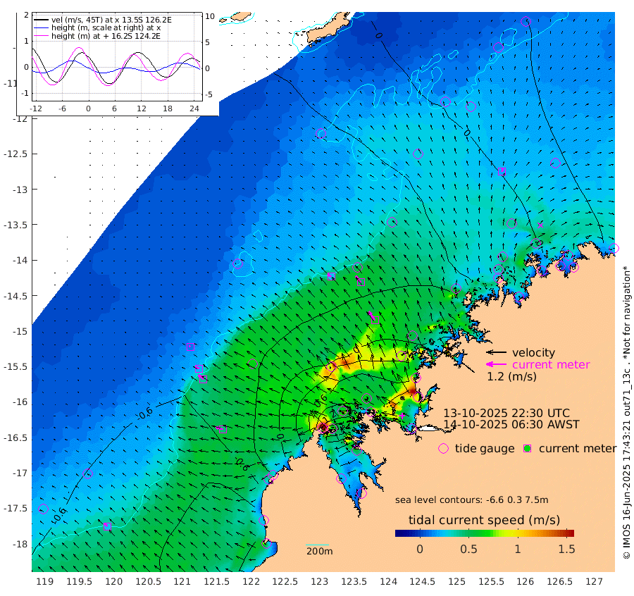 25cm/s -57T +10cm/s rms + 1cm/s 1T. NWSBRW 205m 26cm/s -47T +11cm/s rms + 6cm/s -110T. NWSROW 199m 64cm/s -35T +5cm/s rms + 2cm/s 65T. CAM050 58m 49cm/s -39T +12cm/s rms + 5cm/s 92T. CAM100 99m 10cm/s -63T +7cm/s rms + 1cm/s -85T. KIM400 396m 22cm/s -61T +9cm/s rms + 5cm/s -119T. KIM200 208m 40cm/s -51T +11cm/s rms + 5cm/s -147T. KIM100 99m 44cm/s -76T +8cm/s rms + 3cm/s -103T. KIM050 59m 20cm/s 17T +4cm/s rms + 2cm/s 23T. TIMORS88 91m 38cm Imperieuse Reef -60cm Mermaid Reef -122cm Broome -94cm Cape Baskerville -94cm Red Bluff -81cm Cape Boileau -44cm Scott Reef (WA) -30cm Ashmore Reef 38cm Karrakatta Bay 60cm Sunday Island 304cm Valentine Island 361cm Derby 263cm Port Usborne -13cm Bedford Islands -29cm Yampi Sound (Koolan Island) 1cm Macleay Island -43cm Adele Island -92cm Browse Island 16cm Shale Island 22cm Lizard Island -46cm Hall Point -60cm Degerando Island -87cm White Island -27cm Skua No. 4 Well 13cm Jabiru -83cm Maret Island -87cm Baudin Island -76cm Cape Voltaire (Krait Bay) 12cm Dillon Shoal -37cm Laminaria -72cm Port Warrender -15cm Troughton Island -66cm Cassini Island -48cm West Holothuria Reef Offshore -33cm Jar Island -59cm Lynher Bank -76cm Heywood Shoal -6cm Pee Shoal -3cm Van Cloon Shoal -31cm Carronade Island -31cm Guy Point -26cm Napier Broome Bay 8cm Lesueur Island