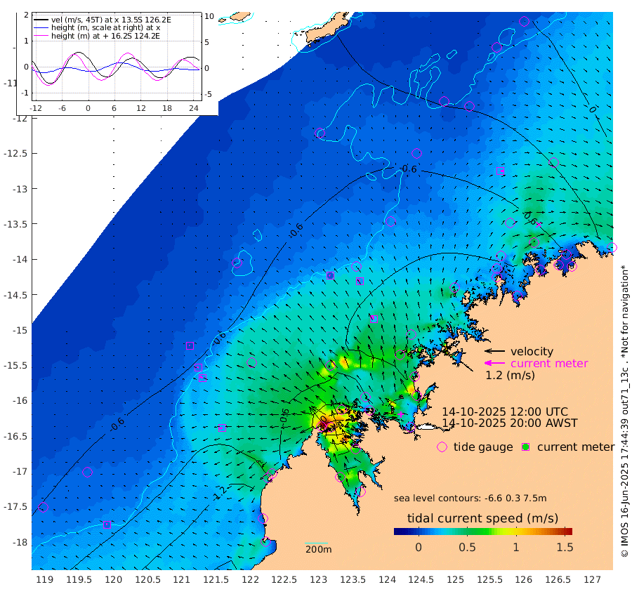 6cm/s -57T +10cm/s rms + 1cm/s 1T. NWSBRW 205m 8cm/s -56T +11cm/s rms + 6cm/s -110T. NWSROW 199m 25cm/s -28T +5cm/s rms + 2cm/s 65T. CAM050 58m 16cm/s -40T +12cm/s rms + 5cm/s 92T. CAM100 99m 3cm/s -84T +7cm/s rms + 1cm/s -85T. KIM400 396m 10cm/s -73T +9cm/s rms + 5cm/s -119T. KIM200 208m 17cm/s -68T +11cm/s rms + 5cm/s -147T. KIM100 99m 20cm/s -108T +8cm/s rms + 3cm/s -103T. KIM050 59m 20cm/s 82T +4cm/s rms + 2cm/s 23T. TIMORS88 91m -20cm Imperieuse Reef -55cm Mermaid Reef -146cm Broome -99cm Cape Baskerville -93cm Red Bluff -106cm Cape Boileau -44cm Scott Reef (WA) -41cm Ashmore Reef -50cm Karrakatta Bay -29cm Sunday Island 122cm Valentine Island 173cm Derby 90cm Port Usborne -75cm Bedford Islands -123cm Yampi Sound (Koolan Island) -97cm Macleay Island -77cm Adele Island -88cm Browse Island -124cm Shale Island -141cm Lizard Island -142cm Hall Point -123cm Degerando Island -141cm White Island -40cm Skua No. 4 Well -31cm Jabiru -108cm Maret Island -107cm Baudin Island -113cm Cape Voltaire (Krait Bay) -17cm Dillon Shoal -12cm Laminaria -130cm Port Warrender -66cm Troughton Island -90cm Cassini Island -69cm West Holothuria Reef Offshore -83cm Jar Island -76cm Lynher Bank -88cm Heywood Shoal -21cm Pee Shoal -34cm Van Cloon Shoal -70cm Carronade Island -71cm Guy Point -72cm Napier Broome Bay -39cm Lesueur Island