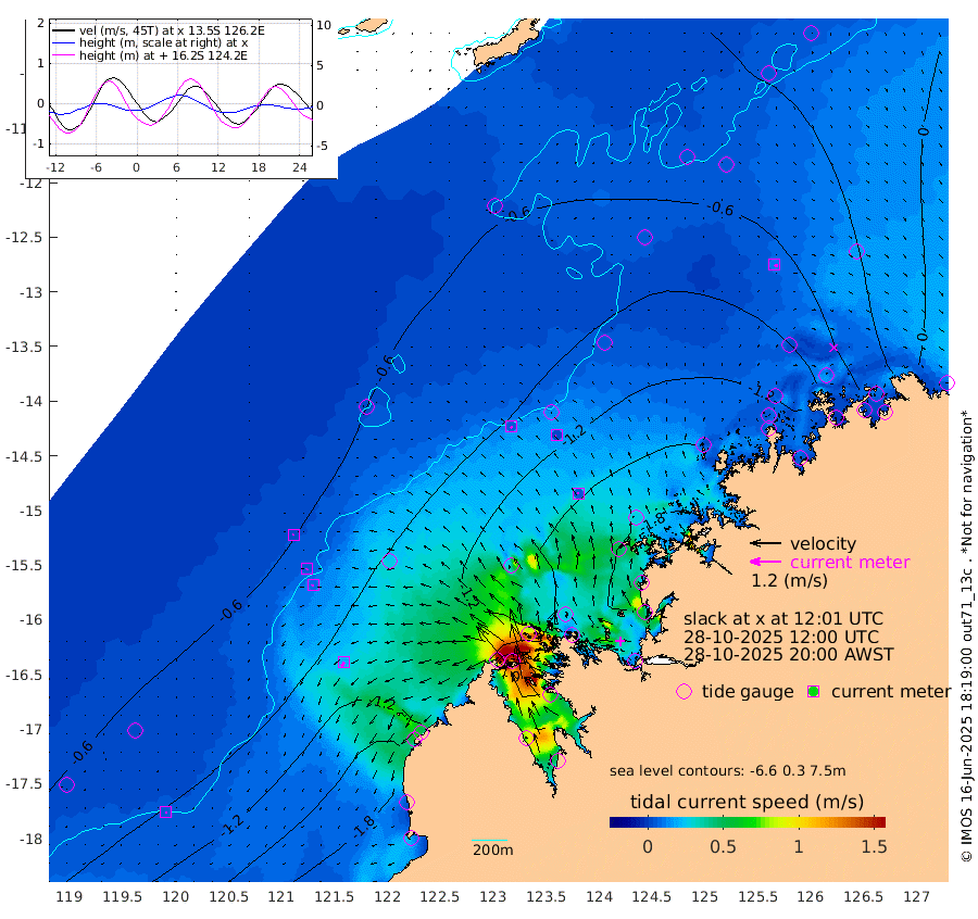 6cm/s 142T +10cm/s rms + 1cm/s 1T. NWSBRW 205m 5cm/s 177T +11cm/s rms + 6cm/s -110T. NWSROW 199m 5cm/s -18T +5cm/s rms + 2cm/s 65T. CAM050 58m 3cm/s -115T +12cm/s rms + 5cm/s 92T. CAM100 99m 3cm/s -148T +7cm/s rms + 1cm/s -85T. KIM400 396m 5cm/s -124T +9cm/s rms + 5cm/s -119T. KIM200 208m 9cm/s -130T +11cm/s rms + 5cm/s -147T. KIM100 99m 19cm/s -153T +8cm/s rms + 3cm/s -103T. KIM050 59m 12cm/s 113T +4cm/s rms + 2cm/s 23T. TIMORS88 91m -52cm Imperieuse Reef -52cm Mermaid Reef -174cm Broome -117cm Cape Baskerville -135cm Red Bluff -118cm Cape Boileau -41cm Scott Reef (WA) -54cm Ashmore Reef -143cm Karrakatta Bay -103cm Sunday Island 17cm Valentine Island 71cm Derby -17cm Port Usborne -147cm Bedford Islands -194cm Yampi Sound (Koolan Island) -184cm Macleay Island -116cm Adele Island -75cm Browse Island -236cm Shale Island -218cm Lizard Island -215cm Hall Point -171cm Degerando Island -165cm White Island -55cm Skua No. 4 Well -49cm Jabiru -129cm Maret Island -129cm Baudin Island -120cm Cape Voltaire (Krait Bay) -27cm Dillon Shoal -5cm Laminaria -127cm Port Warrender -67cm Troughton Island -107cm Cassini Island -67cm West Holothuria Reef Offshore -80cm Jar Island -81cm Lynher Bank -89cm Heywood Shoal -30cm Pee Shoal -25cm Van Cloon Shoal -37cm Carronade Island -33cm Guy Point -39cm Napier Broome Bay 14cm Lesueur Island