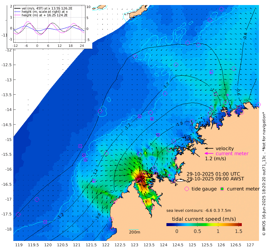 9cm/s 160T +10cm/s rms + 1cm/s 1T. NWSBRW 205m 8cm/s -179T +11cm/s rms + 6cm/s -110T. NWSROW 199m 9cm/s -128T +5cm/s rms + 2cm/s 65T. CAM050 58m 12cm/s -126T +12cm/s rms + 5cm/s 92T. CAM100 99m 4cm/s -131T +7cm/s rms + 1cm/s -85T. KIM400 396m 6cm/s -136T +9cm/s rms + 5cm/s -119T. KIM200 208m 11cm/s -146T +11cm/s rms + 5cm/s -147T. KIM100 99m 21cm/s -154T +8cm/s rms + 3cm/s -103T. KIM050 59m 19cm/s -111T +4cm/s rms + 2cm/s 23T. TIMORS88 91m -85cm Imperieuse Reef -85cm Mermaid Reef -182cm Broome -125cm Cape Baskerville -157cm Red Bluff -122cm Cape Boileau -76cm Scott Reef (WA) -98cm Ashmore Reef -173cm Karrakatta Bay -153cm Sunday Island -66cm Valentine Island -24cm Derby -94cm Port Usborne -177cm Bedford Islands -223cm Yampi Sound (Koolan Island) -210cm Macleay Island -148cm Adele Island -64cm Browse Island -273cm Shale Island -295cm Lizard Island -258cm Hall Point -187cm Degerando Island -180cm White Island -98cm Skua No. 4 Well -99cm Jabiru -153cm Maret Island -136cm Baudin Island -141cm Cape Voltaire (Krait Bay) -71cm Dillon Shoal -77cm Laminaria -142cm Port Warrender -99cm Troughton Island -130cm Cassini Island -99cm West Holothuria Reef Offshore -101cm Jar Island -116cm Lynher Bank -128cm Heywood Shoal -87cm Pee Shoal -66cm Van Cloon Shoal -65cm Carronade Island -63cm Guy Point -68cm Napier Broome Bay -14cm Lesueur Island