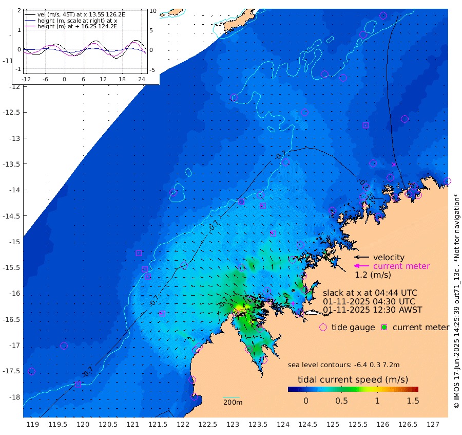 5cm/s -80T +10cm/s rms + 1cm/s 1T. NWSBRW 205m 7cm/s -79T +11cm/s rms + 6cm/s -110T. NWSROW 199m 22cm/s -49T +5cm/s rms + 2cm/s 65T. CAM050 58m 16cm/s -53T +12cm/s rms + 5cm/s 92T. CAM100 99m 5cm/s -87T +7cm/s rms + 1cm/s -85T. KIM400 396m 8cm/s -74T +9cm/s rms + 5cm/s -119T. KIM200 208m 12cm/s -73T +11cm/s rms + 5cm/s -147T. KIM100 99m 19cm/s -94T +8cm/s rms + 3cm/s -103T. KIM050 59m 7cm/s -113T +4cm/s rms + 2cm/s 23T. TIMORS88 91m -32cm Imperieuse Reef -59cm Mermaid Reef -104cm Broome -72cm Cape Baskerville -59cm Red Bluff -77cm Cape Boileau -61cm Scott Reef (WA) -63cm Ashmore Reef -63cm Karrakatta Bay -53cm Sunday Island 23cm Valentine Island 39cm Derby -8cm Port Usborne -68cm Bedford Islands -91cm Yampi Sound (Koolan Island) -131cm Macleay Island -93cm Adele Island -77cm Browse Island -99cm Shale Island -129cm Lizard Island -94cm Hall Point -88cm Degerando Island -90cm White Island -74cm Skua No. 4 Well -67cm Jabiru -91cm Maret Island -72cm Baudin Island -83cm Cape Voltaire (Krait Bay) -50cm Dillon Shoal -62cm Laminaria -68cm Port Warrender -63cm Troughton Island -84cm Cassini Island -67cm West Holothuria Reef Offshore -54cm Jar Island -70cm Lynher Bank -78cm Heywood Shoal -65cm Pee Shoal -45cm Van Cloon Shoal -44cm Carronade Island -43cm Guy Point -54cm Napier Broome Bay -9cm Lesueur Island