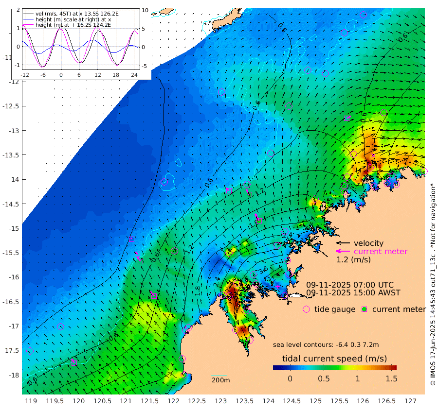 32cm/s -46T +10cm/s rms + 1cm/s 1T. NWSBRW 205m 41cm/s -34T +11cm/s rms + 6cm/s -110T. NWSROW 199m 70cm/s -28T +5cm/s rms + 2cm/s 65T. CAM050 58m 53cm/s -27T +12cm/s rms + 5cm/s 92T. CAM100 99m 10cm/s -32T +7cm/s rms + 1cm/s -85T. KIM400 396m 24cm/s -38T +9cm/s rms + 5cm/s -119T. KIM200 208m 46cm/s -35T +11cm/s rms + 5cm/s -147T. KIM100 99m 52cm/s -40T +8cm/s rms + 3cm/s -103T. KIM050 59m 39cm/s 55T +4cm/s rms + 2cm/s 23T. TIMORS88 91m 111cm Imperieuse Reef 20cm Mermaid Reef 111cm Broome 66cm Cape Baskerville 146cm Red Bluff 56cm Cape Boileau 17cm Scott Reef (WA) 49cm Ashmore Reef 268cm Karrakatta Bay 272cm Sunday Island 352cm Valentine Island 336cm Derby 350cm Port Usborne 252cm Bedford Islands 268cm Yampi Sound (Koolan Island) 271cm Macleay Island 138cm Adele Island -48cm Browse Island 381cm Shale Island 356cm Lizard Island 259cm Hall Point 183cm Degerando Island 134cm White Island 43cm Skua No. 4 Well 49cm Jabiru 83cm Maret Island 68cm Baudin Island 56cm Cape Voltaire (Krait Bay) 41cm Dillon Shoal 12cm Laminaria 66cm Port Warrender 16cm Troughton Island 46cm Cassini Island 17cm West Holothuria Reef Offshore 14cm Jar Island 68cm Lynher Bank 47cm Heywood Shoal 40cm Pee Shoal -5cm Van Cloon Shoal -52cm Carronade Island -56cm Guy Point -58cm Napier Broome Bay -122cm Lesueur Island