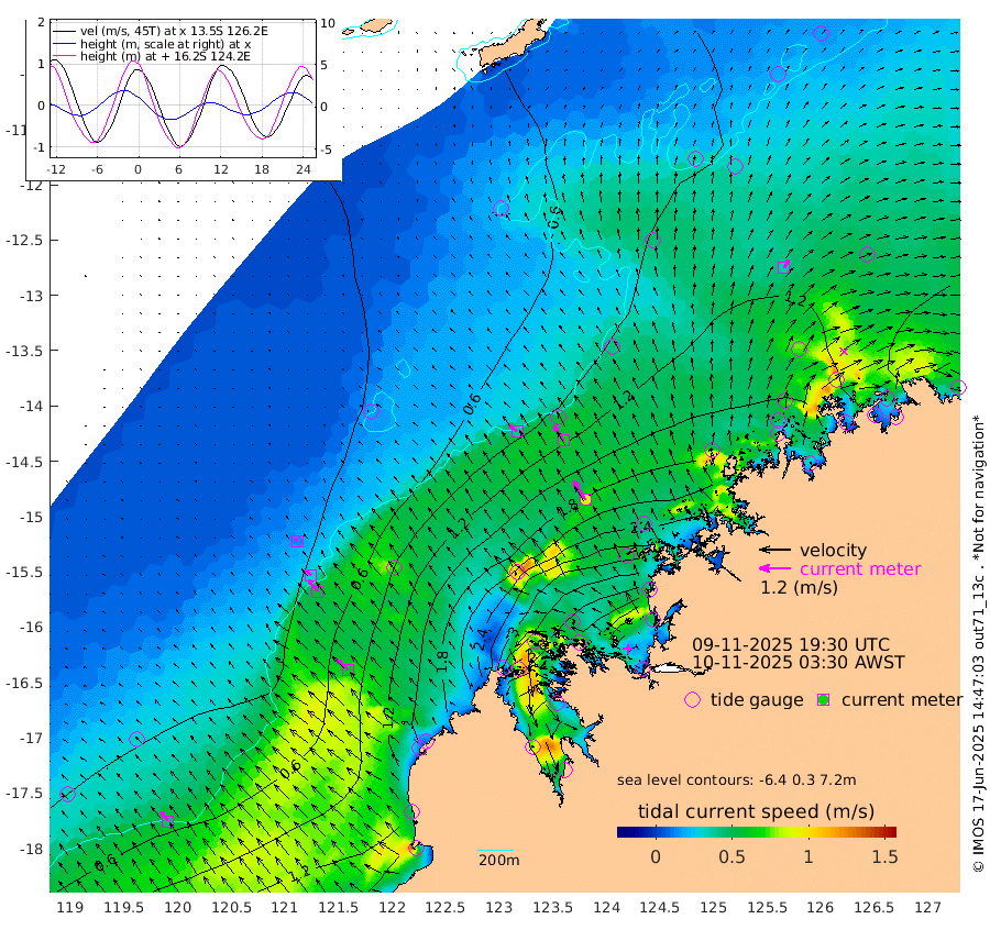 39cm/s -50T +10cm/s rms + 1cm/s 1T. NWSBRW 205m 46cm/s -37T +11cm/s rms + 6cm/s -110T. NWSROW 199m 86cm/s -32T +5cm/s rms + 2cm/s 65T. CAM050 58m 68cm/s -31T +12cm/s rms + 5cm/s 92T. CAM100 99m 14cm/s -45T +7cm/s rms + 1cm/s -85T. KIM400 396m 30cm/s -45T +9cm/s rms + 5cm/s -119T. KIM200 208m 56cm/s -38T +11cm/s rms + 5cm/s -147T. KIM100 99m 62cm/s -49T +8cm/s rms + 3cm/s -103T. KIM050 59m 36cm/s 30T +4cm/s rms + 2cm/s 23T. TIMORS88 91m 146cm Imperieuse Reef 15cm Mermaid Reef 89cm Broome 53cm Cape Baskerville 102cm Red Bluff 69cm Cape Boileau 22cm Scott Reef (WA) 62cm Ashmore Reef 269cm Karrakatta Bay 278cm Sunday Island 444cm Valentine Island 445cm Derby 420cm Port Usborne 228cm Bedford Islands 261cm Yampi Sound (Koolan Island) 267cm Macleay Island 131cm Adele Island -35cm Browse Island 373cm Shale Island 383cm Lizard Island 247cm Hall Point 183cm Degerando Island 135cm White Island 61cm Skua No. 4 Well 100cm Jabiru 88cm Maret Island 73cm Baudin Island 86cm Cape Voltaire (Krait Bay) 83cm Dillon Shoal 3cm Laminaria 117cm Port Warrender 95cm Troughton Island 76cm Cassini Island 56cm West Holothuria Reef Offshore 84cm Jar Island 67cm Lynher Bank 55cm Heywood Shoal 72cm Pee Shoal 66cm Van Cloon Shoal 39cm Carronade Island 36cm Guy Point 47cm Napier Broome Bay 21cm Lesueur Island