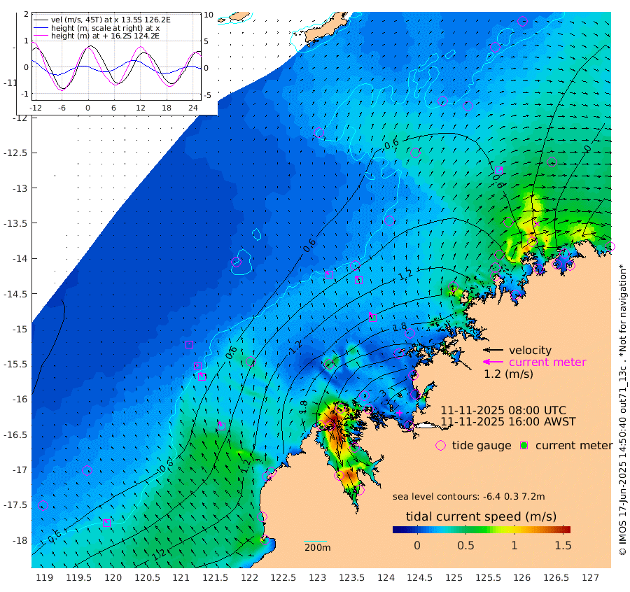 19cm/s -44T +10cm/s rms + 1cm/s 1T. NWSBRW 205m 25cm/s -30T +11cm/s rms + 6cm/s -110T. NWSROW 199m 39cm/s -25T +5cm/s rms + 2cm/s 65T. CAM050 58m 30cm/s -22T +12cm/s rms + 5cm/s 92T. CAM100 99m 5cm/s -11T +7cm/s rms + 1cm/s -85T. KIM400 396m 14cm/s -26T +9cm/s rms + 5cm/s -119T. KIM200 208m 26cm/s -26T +11cm/s rms + 5cm/s -147T. KIM100 99m 31cm/s -28T +8cm/s rms + 3cm/s -103T. KIM050 59m 27cm/s 52T +4cm/s rms + 2cm/s 23T. TIMORS88 91m 79cm Imperieuse Reef 33cm Mermaid Reef 113cm Broome 70cm Cape Baskerville 110cm Red Bluff 55cm Cape Boileau 29cm Scott Reef (WA) 46cm Ashmore Reef 199cm Karrakatta Bay 200cm Sunday Island 237cm Valentine Island 206cm Derby 241cm Port Usborne 204cm Bedford Islands 218cm Yampi Sound (Koolan Island) 235cm Macleay Island 124cm Adele Island -6cm Browse Island 300cm Shale Island 297cm Lizard Island 211cm Hall Point 155cm Degerando Island 127cm White Island 44cm Skua No. 4 Well 40cm Jabiru 85cm Maret Island 69cm Baudin Island 60cm Cape Voltaire (Krait Bay) 26cm Dillon Shoal 22cm Laminaria 66cm Port Warrender 21cm Troughton Island 48cm Cassini Island 23cm West Holothuria Reef Offshore 15cm Jar Island 73cm Lynher Bank 46cm Heywood Shoal 36cm Pee Shoal -8cm Van Cloon Shoal -37cm Carronade Island -39cm Guy Point -46cm Napier Broome Bay -98cm Lesueur Island