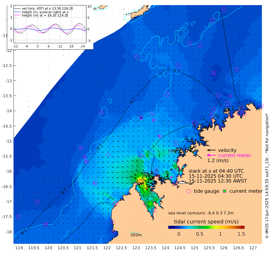 3cm/s -92T +10cm/s rms + 1cm/s 1T. NWSBRW 205m 6cm/s -96T +11cm/s rms + 6cm/s -110T. NWSROW 199m 19cm/s -49T +5cm/s rms + 2cm/s 65T. CAM050 58m 13cm/s -56T +12cm/s rms + 5cm/s 92T. CAM100 99m 5cm/s -89T +7cm/s rms + 1cm/s -85T. KIM400 396m 7cm/s -81T +9cm/s rms + 5cm/s -119T. KIM200 208m 11cm/s -84T +11cm/s rms + 5cm/s -147T. KIM100 99m 19cm/s -103T +8cm/s rms + 3cm/s -103T. KIM050 59m 3cm/s -174T +4cm/s rms + 2cm/s 23T. TIMORS88 91m -36cm Imperieuse Reef -63cm Mermaid Reef -124cm Broome -92cm Cape Baskerville -81cm Red Bluff -96cm Cape Boileau -64cm Scott Reef (WA) -61cm Ashmore Reef -79cm Karrakatta Bay -78cm Sunday Island -17cm Valentine Island 31cm Derby -21cm Port Usborne -100cm Bedford Islands -122cm Yampi Sound (Koolan Island) -162cm Macleay Island -111cm Adele Island -85cm Browse Island -128cm Shale Island -172cm Lizard Island -111cm Hall Point -113cm Degerando Island -123cm White Island -70cm Skua No. 4 Well -56cm Jabiru -105cm Maret Island -90cm Baudin Island -95cm Cape Voltaire (Krait Bay) -42cm Dillon Shoal -53cm Laminaria -104cm Port Warrender -72cm Troughton Island -88cm Cassini Island -76cm West Holothuria Reef Offshore -63cm Jar Island -86cm Lynher Bank -81cm Heywood Shoal -63cm Pee Shoal -47cm Van Cloon Shoal -51cm Carronade Island -53cm Guy Point -58cm Napier Broome Bay -15cm Lesueur Island