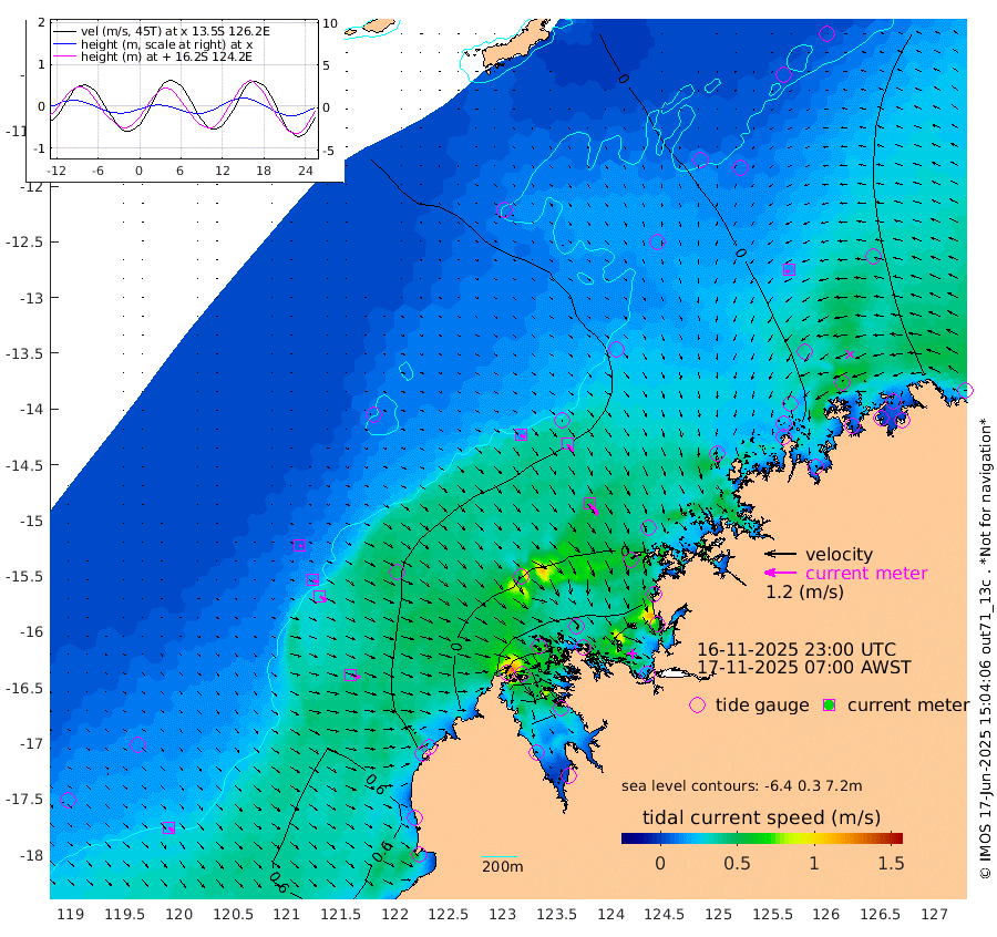 17cm/s 129T +10cm/s rms + 1cm/s 1T. NWSBRW 205m 21cm/s 137T +11cm/s rms + 6cm/s -110T. NWSROW 199m 52cm/s 144T +5cm/s rms + 2cm/s 65T. CAM050 58m 36cm/s 144T +12cm/s rms + 5cm/s 92T. CAM100 99m 9cm/s 115T +7cm/s rms + 1cm/s -85T. KIM400 396m 17cm/s 121T +9cm/s rms + 5cm/s -119T. KIM200 208m 31cm/s 128T +11cm/s rms + 5cm/s -147T. KIM100 99m 37cm/s 105T +8cm/s rms + 3cm/s -103T. KIM050 59m 17cm/s -119T +4cm/s rms + 2cm/s 23T. TIMORS88 91m -35cm Imperieuse Reef 42cm Mermaid Reef 88cm Broome 67cm Cape Baskerville 46cm Red Bluff 67cm Cape Boileau 38cm Scott Reef (WA) 13cm Ashmore Reef -25cm Karrakatta Bay -42cm Sunday Island -179cm Valentine Island -234cm Derby -164cm Port Usborne -2cm Bedford Islands 18cm Yampi Sound (Koolan Island) 57cm Macleay Island 47cm Adele Island 90cm Browse Island -12cm Shale Island 6cm Lizard Island 32cm Hall Point 35cm Degerando Island 65cm White Island 26cm Skua No. 4 Well -1cm Jabiru 54cm Maret Island 51cm Baudin Island 45cm Cape Voltaire (Krait Bay) -6cm Dillon Shoal 22cm Laminaria 40cm Port Warrender 2cm Troughton Island 38cm Cassini Island 31cm West Holothuria Reef Offshore 8cm Jar Island 38cm Lynher Bank 49cm Heywood Shoal 4cm Pee Shoal -11cm Van Cloon Shoal 3cm Carronade Island 8cm Guy Point 8cm Napier Broome Bay -45cm Lesueur Island