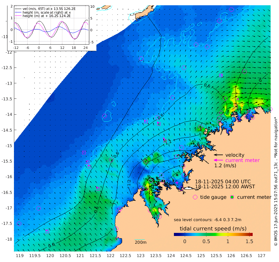 21cm/s -45T +10cm/s rms + 1cm/s 1T. NWSBRW 205m 27cm/s -36T +11cm/s rms + 6cm/s -110T. NWSROW 199m 48cm/s -28T +5cm/s rms + 2cm/s 65T. CAM050 58m 37cm/s -27T +12cm/s rms + 5cm/s 92T. CAM100 99m 7cm/s -39T +7cm/s rms + 1cm/s -85T. KIM400 396m 17cm/s -40T +9cm/s rms + 5cm/s -119T. KIM200 208m 31cm/s -35T +11cm/s rms + 5cm/s -147T. KIM100 99m 37cm/s -41T +8cm/s rms + 3cm/s -103T. KIM050 59m 21cm/s 60T +4cm/s rms + 2cm/s 23T. TIMORS88 91m 75cm Imperieuse Reef 12cm Mermaid Reef 79cm Broome 59cm Cape Baskerville 122cm Red Bluff 55cm Cape Boileau 10cm Scott Reef (WA) 30cm Ashmore Reef 185cm Karrakatta Bay 194cm Sunday Island 247cm Valentine Island 225cm Derby 225cm Port Usborne 188cm Bedford Islands 182cm Yampi Sound (Koolan Island) 181cm Macleay Island 96cm Adele Island -38cm Browse Island 244cm Shale Island 205cm Lizard Island 148cm Hall Point 132cm Degerando Island 91cm White Island 27cm Skua No. 4 Well 29cm Jabiru 60cm Maret Island 53cm Baudin Island 43cm Cape Voltaire (Krait Bay) 33cm Dillon Shoal -1cm Laminaria 64cm Port Warrender 13cm Troughton Island 36cm Cassini Island 14cm West Holothuria Reef Offshore 10cm Jar Island 45cm Lynher Bank 41cm Heywood Shoal 28cm Pee Shoal 0cm Van Cloon Shoal -32cm Carronade Island -29cm Guy Point -36cm Napier Broome Bay -80cm Lesueur Island