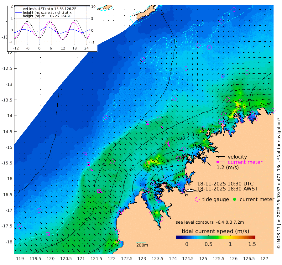 31cm/s 129T +10cm/s rms + 1cm/s 1T. NWSBRW 205m 33cm/s 142T +11cm/s rms + 6cm/s -110T. NWSROW 199m 66cm/s 142T +5cm/s rms + 2cm/s 65T. CAM050 58m 51cm/s 141T +12cm/s rms + 5cm/s 92T. CAM100 99m 10cm/s 126T +7cm/s rms + 1cm/s -85T. KIM400 396m 22cm/s 127T +9cm/s rms + 5cm/s -119T. KIM200 208m 43cm/s 135T +11cm/s rms + 5cm/s -147T. KIM100 99m 47cm/s 120T +8cm/s rms + 3cm/s -103T. KIM050 59m 18cm/s -144T +4cm/s rms + 2cm/s 23T. TIMORS88 91m -60cm Imperieuse Reef 35cm Mermaid Reef -10cm Broome 5cm Cape Baskerville -63cm Red Bluff -8cm Cape Boileau 31cm Scott Reef (WA) 15cm Ashmore Reef -140cm Karrakatta Bay -152cm Sunday Island -275cm Valentine Island -269cm Derby -241cm Port Usborne -128cm Bedford Islands -124cm Yampi Sound (Koolan Island) -113cm Macleay Island -37cm Adele Island 72cm Browse Island -188cm Shale Island -198cm Lizard Island -110cm Hall Point -77cm Degerando Island -33cm White Island 19cm Skua No. 4 Well -3cm Jabiru -1cm Maret Island 14cm Baudin Island 7cm Cape Voltaire (Krait Bay) 8cm Dillon Shoal 56cm Laminaria -18cm Port Warrender 24cm Troughton Island 17cm Cassini Island 32cm West Holothuria Reef Offshore 21cm Jar Island 1cm Lynher Bank 20cm Heywood Shoal 11cm Pee Shoal 21cm Van Cloon Shoal 52cm Carronade Island 58cm Guy Point 48cm Napier Broome Bay 84cm Lesueur Island