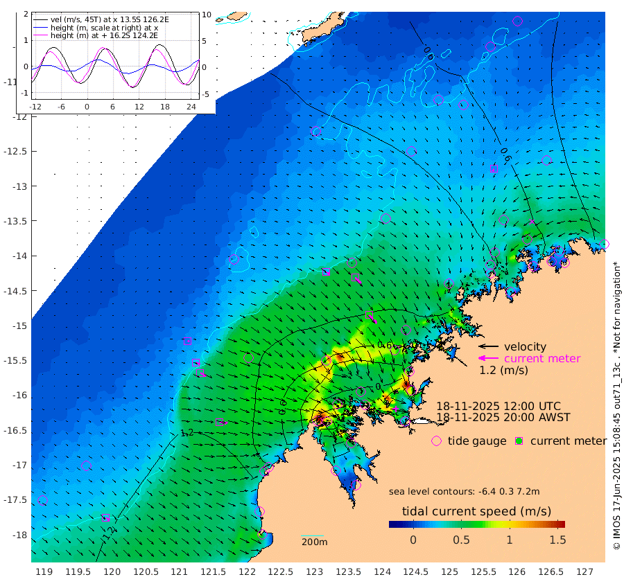 23cm/s 121T +10cm/s rms + 1cm/s 1T. NWSBRW 205m 28cm/s 130T +11cm/s rms + 6cm/s -110T. NWSROW 199m 69cm/s 138T +5cm/s rms + 2cm/s 65T. CAM050 58m 50cm/s 134T +12cm/s rms + 5cm/s 92T. CAM100 99m 11cm/s 107T +7cm/s rms + 1cm/s -85T. KIM400 396m 24cm/s 115T +9cm/s rms + 5cm/s -119T. KIM200 208m 41cm/s 119T +11cm/s rms + 5cm/s -147T. KIM100 99m 49cm/s 97T +8cm/s rms + 3cm/s -103T. KIM050 59m 15cm/s -144T +4cm/s rms + 2cm/s 23T. TIMORS88 91m 11cm Imperieuse Reef 111cm Mermaid Reef 183cm Broome 145cm Cape Baskerville 100cm Red Bluff 136cm Cape Boileau 104cm Scott Reef (WA) 100cm Ashmore Reef 25cm Karrakatta Bay 6cm Sunday Island -204cm Valentine Island -257cm Derby -160cm Port Usborne 65cm Bedford Islands 101cm Yampi Sound (Koolan Island) 143cm Macleay Island 133cm Adele Island 161cm Browse Island 63cm Shale Island 58cm Lizard Island 94cm Hall Point 123cm Degerando Island 156cm White Island 109cm Skua No. 4 Well 69cm Jabiru 160cm Maret Island 154cm Baudin Island 152cm Cape Voltaire (Krait Bay) 73cm Dillon Shoal 102cm Laminaria 148cm Port Warrender 122cm Troughton Island 153cm Cassini Island 133cm West Holothuria Reef Offshore 112cm Jar Island 115cm Lynher Bank 142cm Heywood Shoal 92cm Pee Shoal 79cm Van Cloon Shoal 111cm Carronade Island 117cm Guy Point 109cm Napier Broome Bay 76cm Lesueur Island
