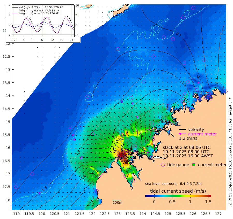 4cm/s -123T +10cm/s rms + 1cm/s 1T. NWSBRW 205m 7cm/s -102T +11cm/s rms + 6cm/s -110T. NWSROW 199m 30cm/s -41T +5cm/s rms + 2cm/s 65T. CAM050 58m 19cm/s -56T +12cm/s rms + 5cm/s 92T. CAM100 99m 6cm/s -104T +7cm/s rms + 1cm/s -85T. KIM400 396m 11cm/s -90T +9cm/s rms + 5cm/s -119T. KIM200 208m 18cm/s -98T +11cm/s rms + 5cm/s -147T. KIM100 99m 32cm/s -121T +8cm/s rms + 3cm/s -103T. KIM050 59m 11cm/s 75T +4cm/s rms + 2cm/s 23T. TIMORS88 91m -58cm Imperieuse Reef -96cm Mermaid Reef -258cm Broome -182cm Cape Baskerville -203cm Red Bluff -190cm Cape Boileau -90cm Scott Reef (WA) -94cm Ashmore Reef -164cm Karrakatta Bay -140cm Sunday Island 33cm Valentine Island 122cm Derby 7cm Port Usborne -203cm Bedford Islands -258cm Yampi Sound (Koolan Island) -305cm Macleay Island -206cm Adele Island -145cm Browse Island -274cm Shale Island -295cm Lizard Island -263cm Hall Point -240cm Degerando Island -242cm White Island -104cm Skua No. 4 Well -74cm Jabiru -205cm Maret Island -176cm Baudin Island -185cm Cape Voltaire (Krait Bay) -58cm Dillon Shoal -42cm Laminaria -206cm Port Warrender -106cm Troughton Island -170cm Cassini Island -123cm West Holothuria Reef Offshore -106cm Jar Island -138cm Lynher Bank -152cm Heywood Shoal -81cm Pee Shoal -53cm Van Cloon Shoal -66cm Carronade Island -64cm Guy Point -73cm Napier Broome Bay 36cm Lesueur Island