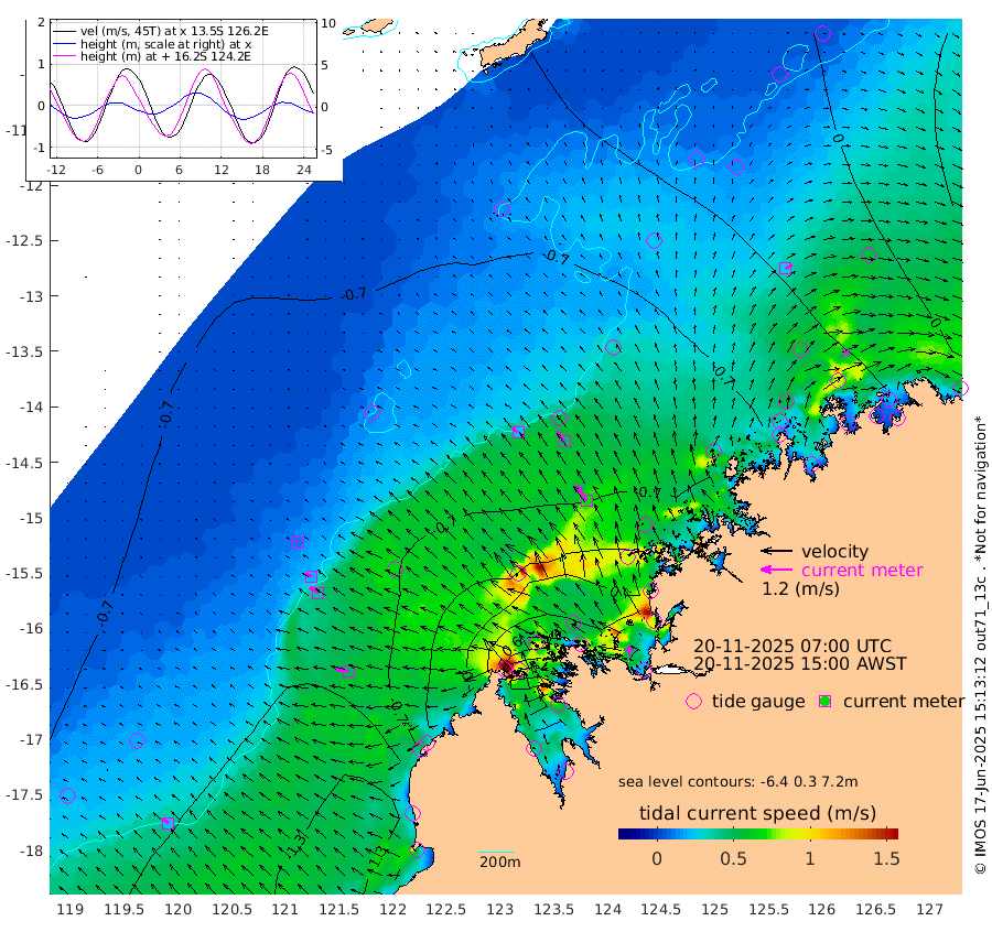 25cm/s -53T +10cm/s rms + 1cm/s 1T. NWSBRW 205m 26cm/s -51T +11cm/s rms + 6cm/s -110T. NWSROW 199m 70cm/s -33T +5cm/s rms + 2cm/s 65T. CAM050 58m 49cm/s -37T +12cm/s rms + 5cm/s 92T. CAM100 99m 10cm/s -68T +7cm/s rms + 1cm/s -85T. KIM400 396m 23cm/s -61T +9cm/s rms + 5cm/s -119T. KIM200 208m 39cm/s -56T +11cm/s rms + 5cm/s -147T. KIM100 99m 48cm/s -81T +8cm/s rms + 3cm/s -103T. KIM050 59m 28cm/s 59T +4cm/s rms + 2cm/s 23T. TIMORS88 91m 13cm Imperieuse Reef -78cm Mermaid Reef -171cm Broome -123cm Cape Baskerville -91cm Red Bluff -129cm Cape Boileau -73cm Scott Reef (WA) -61cm Ashmore Reef 2cm Karrakatta Bay 37cm Sunday Island 260cm Valentine Island 319cm Derby 212cm Port Usborne -33cm Bedford Islands -77cm Yampi Sound (Koolan Island) -116cm Macleay Island -104cm Adele Island -159cm Browse Island -36cm Shale Island -53cm Lizard Island -82cm Hall Point -106cm Degerando Island -135cm White Island -73cm Skua No. 4 Well -37cm Jabiru -136cm Maret Island -121cm Baudin Island -130cm Cape Voltaire (Krait Bay) -28cm Dillon Shoal -41cm Laminaria -124cm Port Warrender -80cm Troughton Island -126cm Cassini Island -96cm West Holothuria Reef Offshore -82cm Jar Island -83cm Lynher Bank -109cm Heywood Shoal -49cm Pee Shoal -42cm Van Cloon Shoal -77cm Carronade Island -76cm Guy Point -84cm Napier Broome Bay -24cm Lesueur Island