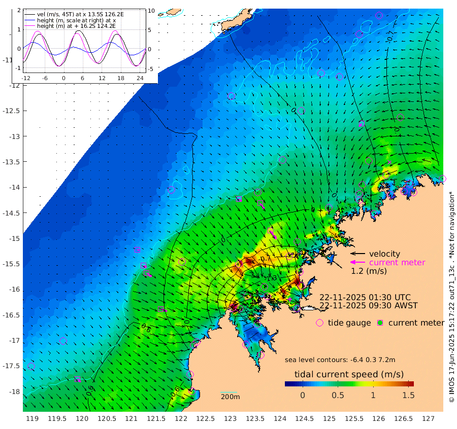 29cm/s 125T +10cm/s rms + 1cm/s 1T. NWSBRW 205m 36cm/s 139T +11cm/s rms + 6cm/s -110T. NWSROW 199m 87cm/s 145T +5cm/s rms + 2cm/s 65T. CAM050 58m 61cm/s 144T +12cm/s rms + 5cm/s 92T. CAM100 99m 13cm/s 121T +7cm/s rms + 1cm/s -85T. KIM400 396m 28cm/s 122T +9cm/s rms + 5cm/s -119T. KIM200 208m 50cm/s 128T +11cm/s rms + 5cm/s -147T. KIM100 99m 57cm/s 110T +8cm/s rms + 3cm/s -103T. KIM050 59m 34cm/s -134T +4cm/s rms + 2cm/s 23T. TIMORS88 91m -73cm Imperieuse Reef 43cm Mermaid Reef 107cm Broome 72cm Cape Baskerville 41cm Red Bluff 65cm Cape Boileau 35cm Scott Reef (WA) 5cm Ashmore Reef -89cm Karrakatta Bay -132cm Sunday Island -378cm Valentine Island -432cm Derby -319cm Port Usborne -41cm Bedford Islands -24cm Yampi Sound (Koolan Island) 4cm Macleay Island 27cm Adele Island 121cm Browse Island -81cm Shale Island -80cm Lizard Island -36cm Hall Point 20cm Degerando Island 47cm White Island 20cm Skua No. 4 Well -33cm Jabiru 63cm Maret Island 47cm Baudin Island 51cm Cape Voltaire (Krait Bay) -37cm Dillon Shoal 11cm Laminaria 19cm Port Warrender -21cm Troughton Island 46cm Cassini Island 15cm West Holothuria Reef Offshore -12cm Jar Island 28cm Lynher Bank 52cm Heywood Shoal -16cm Pee Shoal -43cm Van Cloon Shoal -17cm Carronade Island -18cm Guy Point -18cm Napier Broome Bay -86cm Lesueur Island