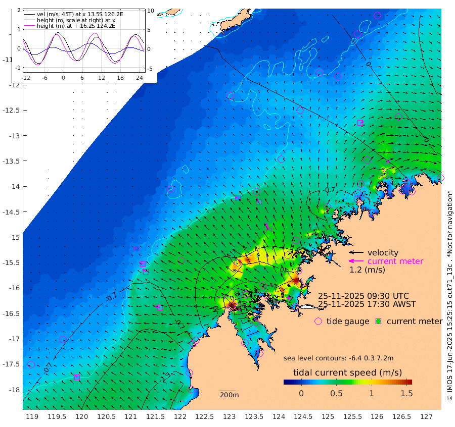 18cm/s -60T +10cm/s rms + 1cm/s 1T. NWSBRW 205m 22cm/s -48T +11cm/s rms + 6cm/s -110T. NWSROW 199m 58cm/s -29T +5cm/s rms + 2cm/s 65T. CAM050 58m 39cm/s -33T +12cm/s rms + 5cm/s 92T. CAM100 99m 7cm/s -64T +7cm/s rms + 1cm/s -85T. KIM400 396m 19cm/s -61T +9cm/s rms + 5cm/s -119T. KIM200 208m 34cm/s -54T +11cm/s rms + 5cm/s -147T. KIM100 99m 37cm/s -81T +8cm/s rms + 3cm/s -103T. KIM050 59m 27cm/s 63T +4cm/s rms + 2cm/s 23T. TIMORS88 91m 9cm Imperieuse Reef -60cm Mermaid Reef -148cm Broome -113cm Cape Baskerville -82cm Red Bluff -117cm Cape Boileau -53cm Scott Reef (WA) -42cm Ashmore Reef -5cm Karrakatta Bay 40cm Sunday Island 244cm Valentine Island 306cm Derby 205cm Port Usborne -40cm Bedford Islands -61cm Yampi Sound (Koolan Island) -64cm Macleay Island -67cm Adele Island -125cm Browse Island -30cm Shale Island -24cm Lizard Island -70cm Hall Point -94cm Degerando Island -105cm White Island -54cm Skua No. 4 Well -36cm Jabiru -113cm Maret Island -111cm Baudin Island -109cm Cape Voltaire (Krait Bay) -10cm Dillon Shoal -18cm Laminaria -104cm Port Warrender -65cm Troughton Island -104cm Cassini Island -68cm West Holothuria Reef Offshore -70cm Jar Island -65cm Lynher Bank -90cm Heywood Shoal -27cm Pee Shoal -29cm Van Cloon Shoal -62cm Carronade Island -62cm Guy Point -67cm Napier Broome Bay -32cm Lesueur Island