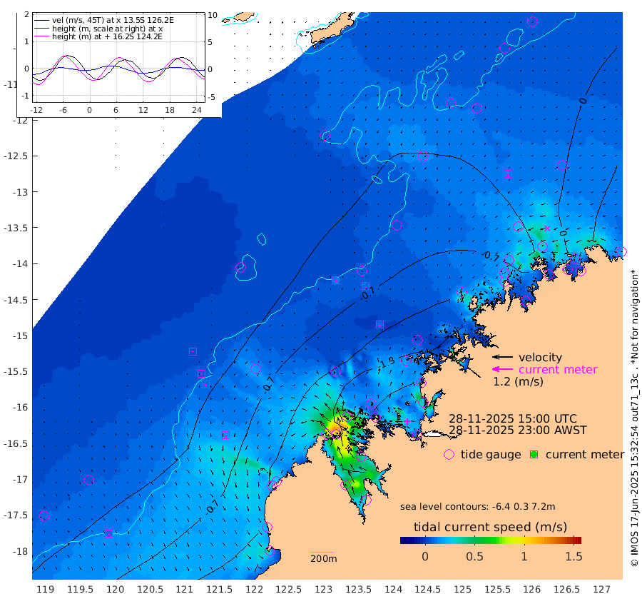 12cm/s 140T +10cm/s rms + 1cm/s 1T. NWSBRW 205m 8cm/s 157T +11cm/s rms + 6cm/s -110T. NWSROW 199m 9cm/s 162T +5cm/s rms + 2cm/s 65T. CAM050 58m 9cm/s 157T +12cm/s rms + 5cm/s 92T. CAM100 99m 3cm/s -165T +7cm/s rms + 1cm/s -85T. KIM400 396m 5cm/s -171T +9cm/s rms + 5cm/s -119T. KIM200 208m 9cm/s -173T +11cm/s rms + 5cm/s -147T. KIM100 99m 14cm/s 176T +8cm/s rms + 3cm/s -103T. KIM050 59m 12cm/s -160T +4cm/s rms + 2cm/s 23T. TIMORS88 91m -43cm Imperieuse Reef -29cm Mermaid Reef -98cm Broome -68cm Cape Baskerville -76cm Red Bluff -53cm Cape Boileau -25cm Scott Reef (WA) -33cm Ashmore Reef -126cm Karrakatta Bay -100cm Sunday Island -102cm Valentine Island -61cm Derby -106cm Port Usborne -118cm Bedford Islands -141cm Yampi Sound (Koolan Island) -171cm Macleay Island -89cm Adele Island -28cm Browse Island -195cm Shale Island -164cm Lizard Island -122cm Hall Point -107cm Degerando Island -96cm White Island -41cm Skua No. 4 Well -23cm Jabiru -70cm Maret Island -67cm Baudin Island -55cm Cape Voltaire (Krait Bay) -24cm Dillon Shoal -13cm Laminaria -52cm Port Warrender -27cm Troughton Island -52cm Cassini Island -28cm West Holothuria Reef Offshore -22cm Jar Island -45cm Lynher Bank -45cm Heywood Shoal -24cm Pee Shoal 8cm Van Cloon Shoal 19cm Carronade Island 17cm Guy Point 27cm Napier Broome Bay 66cm Lesueur Island