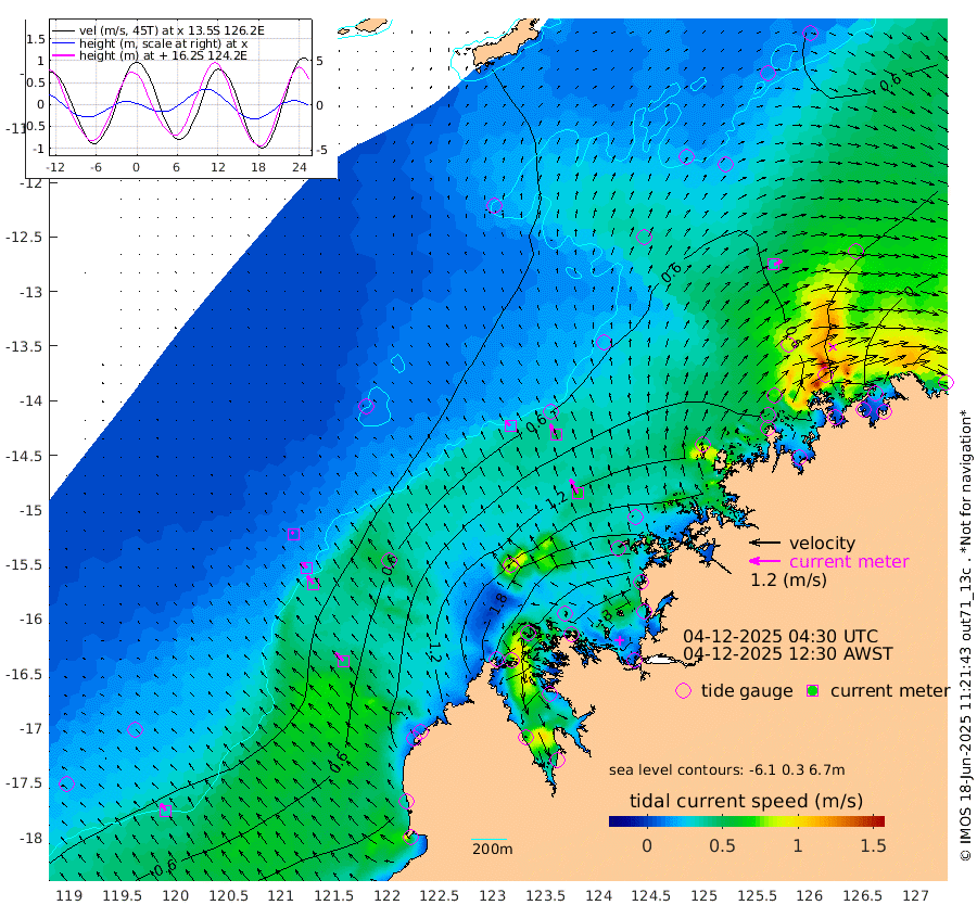 26cm/s -46T +10cm/s rms + 1cm/s 1T. NWSBRW 205m 34cm/s -37T +11cm/s rms + 6cm/s -110T. NWSROW 199m 63cm/s -28T +5cm/s rms + 2cm/s 65T. CAM050 58m 47cm/s -27T +12cm/s rms + 5cm/s 92T. CAM100 99m 9cm/s -40T +7cm/s rms + 1cm/s -85T. KIM400 396m 22cm/s -43T +9cm/s rms + 5cm/s -119T. KIM200 208m 40cm/s -39T +11cm/s rms + 5cm/s -147T. KIM100 99m 45cm/s -46T +8cm/s rms + 3cm/s -103T. KIM050 59m 36cm/s 63T +4cm/s rms + 2cm/s 23T. TIMORS88 91m 87cm Imperieuse Reef 4cm Mermaid Reef 64cm Broome 41cm Cape Baskerville 132cm Red Bluff 36cm Cape Boileau 2cm Scott Reef (WA) 35cm Ashmore Reef 211cm Karrakatta Bay 214cm Sunday Island 298cm Valentine Island 297cm Derby 282cm Port Usborne 185cm Bedford Islands 193cm Yampi Sound (Koolan Island) 192cm Macleay Island 98cm Adele Island -64cm Browse Island 278cm Shale Island 230cm Lizard Island 232cm Hall Point 128cm Degerando Island 81cm White Island 28cm Skua No. 4 Well 48cm Jabiru 51cm Maret Island 39cm Baudin Island 31cm Cape Voltaire (Krait Bay) 46cm Dillon Shoal 5cm Laminaria 41cm Port Warrender 4cm Troughton Island 31cm Cassini Island 8cm West Holothuria Reef Offshore 2cm Jar Island 32cm Lynher Bank 36cm Heywood Shoal 33cm Pee Shoal -2cm Van Cloon Shoal -47cm Carronade Island -48cm Guy Point -50cm Napier Broome Bay -105cm Lesueur Island