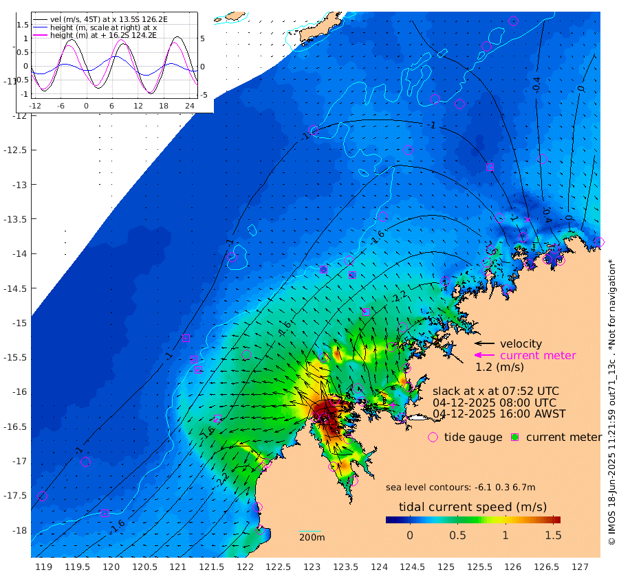 6cm/s 171T +10cm/s rms + 1cm/s 1T. NWSBRW 205m 7cm/s -147T +11cm/s rms + 6cm/s -110T. NWSROW 199m 22cm/s -42T +5cm/s rms + 2cm/s 65T. CAM050 58m 12cm/s -68T +12cm/s rms + 5cm/s 92T. CAM100 99m 6cm/s -116T +7cm/s rms + 1cm/s -85T. KIM400 396m 10cm/s -107T +9cm/s rms + 5cm/s -119T. KIM200 208m 16cm/s -118T +11cm/s rms + 5cm/s -147T. KIM100 99m 31cm/s -134T +8cm/s rms + 3cm/s -103T. KIM050 59m 11cm/s 89T +4cm/s rms + 2cm/s 23T. TIMORS88 91m -75cm Imperieuse Reef -94cm Mermaid Reef -277cm Broome -195cm Cape Baskerville -209cm Red Bluff -198cm Cape Boileau -90cm Scott Reef (WA) -99cm Ashmore Reef -210cm Karrakatta Bay -171cm Sunday Island -9cm Valentine Island 85cm Derby -42cm Port Usborne -249cm Bedford Islands -291cm Yampi Sound (Koolan Island) -345cm Macleay Island -221cm Adele Island -146cm Browse Island -326cm Shale Island -331cm Lizard Island -253cm Hall Point -265cm Degerando Island -249cm White Island -113cm Skua No. 4 Well -79cm Jabiru -219cm Maret Island -189cm Baudin Island -190cm Cape Voltaire (Krait Bay) -54cm Dillon Shoal -34cm Laminaria -199cm Port Warrender -108cm Troughton Island -178cm Cassini Island -115cm West Holothuria Reef Offshore -102cm Jar Island -143cm Lynher Bank -149cm Heywood Shoal -84cm Pee Shoal -44cm Van Cloon Shoal -46cm Carronade Island -42cm Guy Point -51cm Napier Broome Bay 59cm Lesueur Island