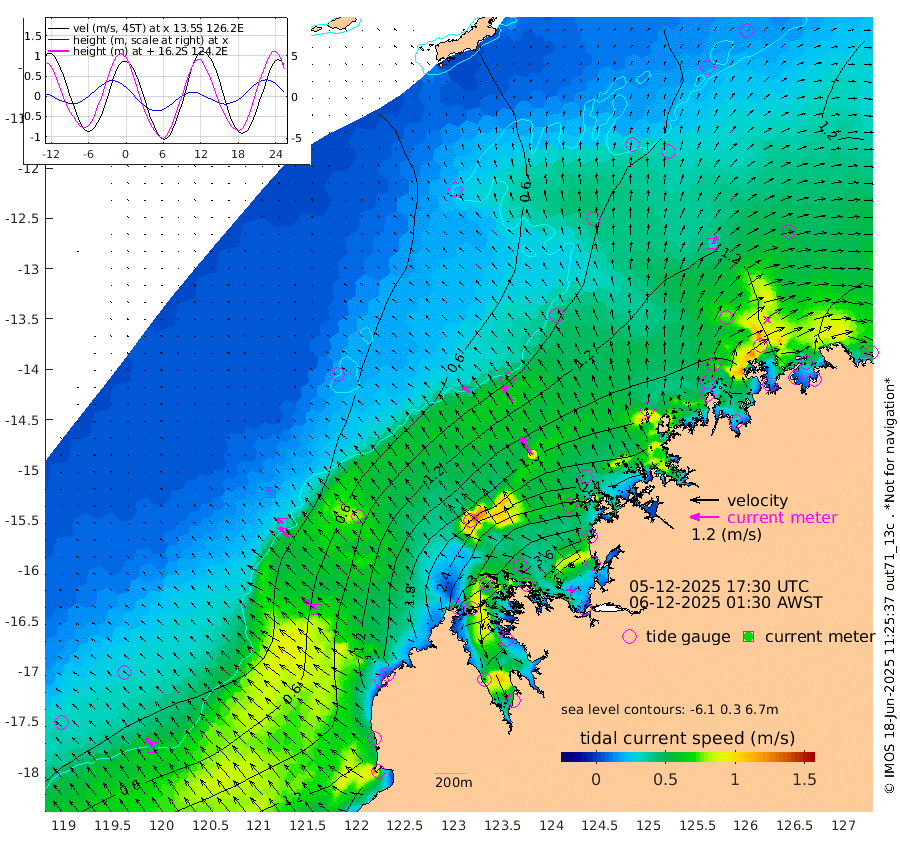 41cm/s -51T +10cm/s rms + 1cm/s 1T. NWSBRW 205m 48cm/s -37T +11cm/s rms + 6cm/s -110T. NWSROW 199m 90cm/s -33T +5cm/s rms + 2cm/s 65T. CAM050 58m 70cm/s -33T +12cm/s rms + 5cm/s 92T. CAM100 99m 15cm/s -48T +7cm/s rms + 1cm/s -85T. KIM400 396m 32cm/s -47T +9cm/s rms + 5cm/s -119T. KIM200 208m 60cm/s -40T +11cm/s rms + 5cm/s -147T. KIM100 99m 66cm/s -51T +8cm/s rms + 3cm/s -103T. KIM050 59m 34cm/s 31T +4cm/s rms + 2cm/s 23T. TIMORS88 91m 142cm Imperieuse Reef 3cm Mermaid Reef 83cm Broome 53cm Cape Baskerville 123cm Red Bluff 67cm Cape Boileau 8cm Scott Reef (WA) 59cm Ashmore Reef 272cm Karrakatta Bay 268cm Sunday Island 446cm Valentine Island 437cm Derby 406cm Port Usborne 225cm Bedford Islands 254cm Yampi Sound (Koolan Island) 255cm Macleay Island 127cm Adele Island -40cm Browse Island 364cm Shale Island 355cm Lizard Island 277cm Hall Point 181cm Degerando Island 126cm White Island 53cm Skua No. 4 Well 87cm Jabiru 89cm Maret Island 77cm Baudin Island 83cm Cape Voltaire (Krait Bay) 75cm Dillon Shoal -16cm Laminaria 121cm Port Warrender 97cm Troughton Island 82cm Cassini Island 56cm West Holothuria Reef Offshore 86cm Jar Island 53cm Lynher Bank 43cm Heywood Shoal 69cm Pee Shoal 68cm Van Cloon Shoal 40cm Carronade Island 31cm Guy Point 46cm Napier Broome Bay 24cm Lesueur Island